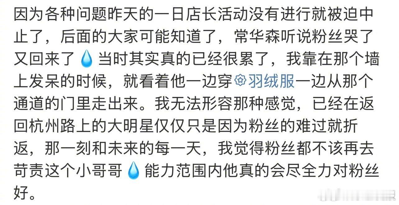 常华森因为粉丝哭了返回活动常华森因为粉丝哭了折返 看了粉丝发的repo才知道,原来活动被迫中止、已经在返程路上的,听说粉丝难过就立刻折回来了。好温柔的人