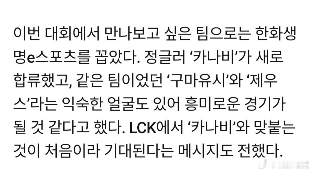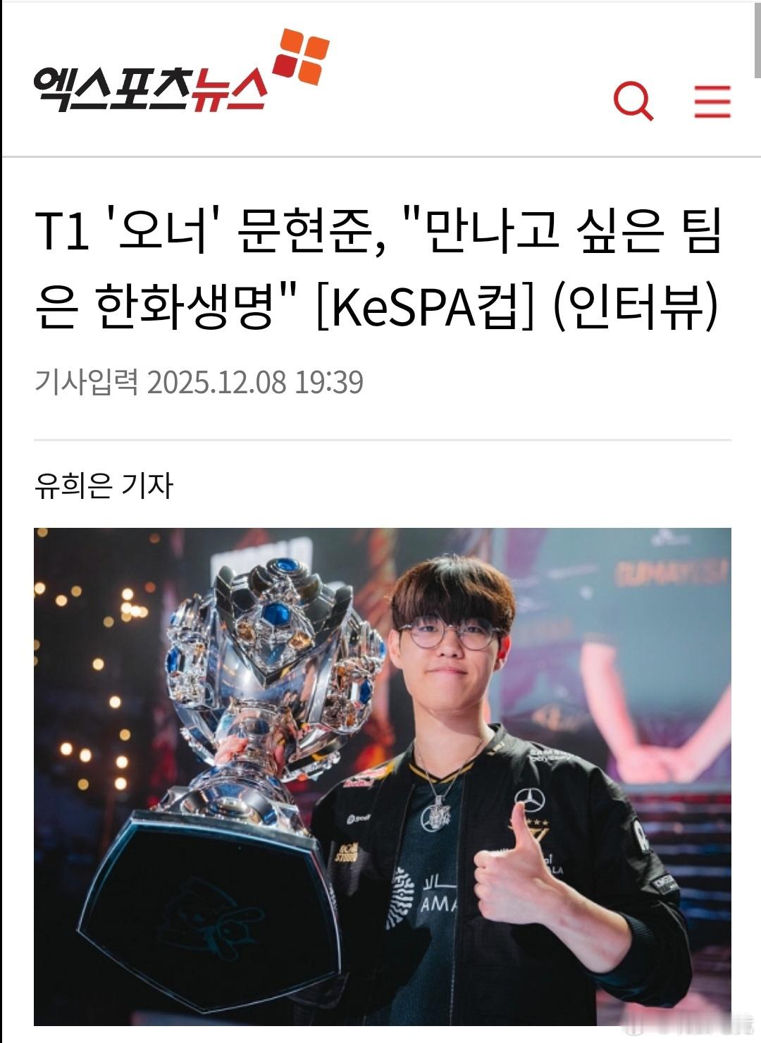 Oner选手接受韩国xports news采访表示:本届大赛最想见到的俱乐部是韩华。因为Kanavi的新加入,还有曾经同队过的Gumayusi和Zeus等熟悉的面孔,所以认为这场对决将是一场有趣的比赛。而且是在LCK上首次与Kanavi对决,因此非常期待。Oner想面对Kanavi2025lck