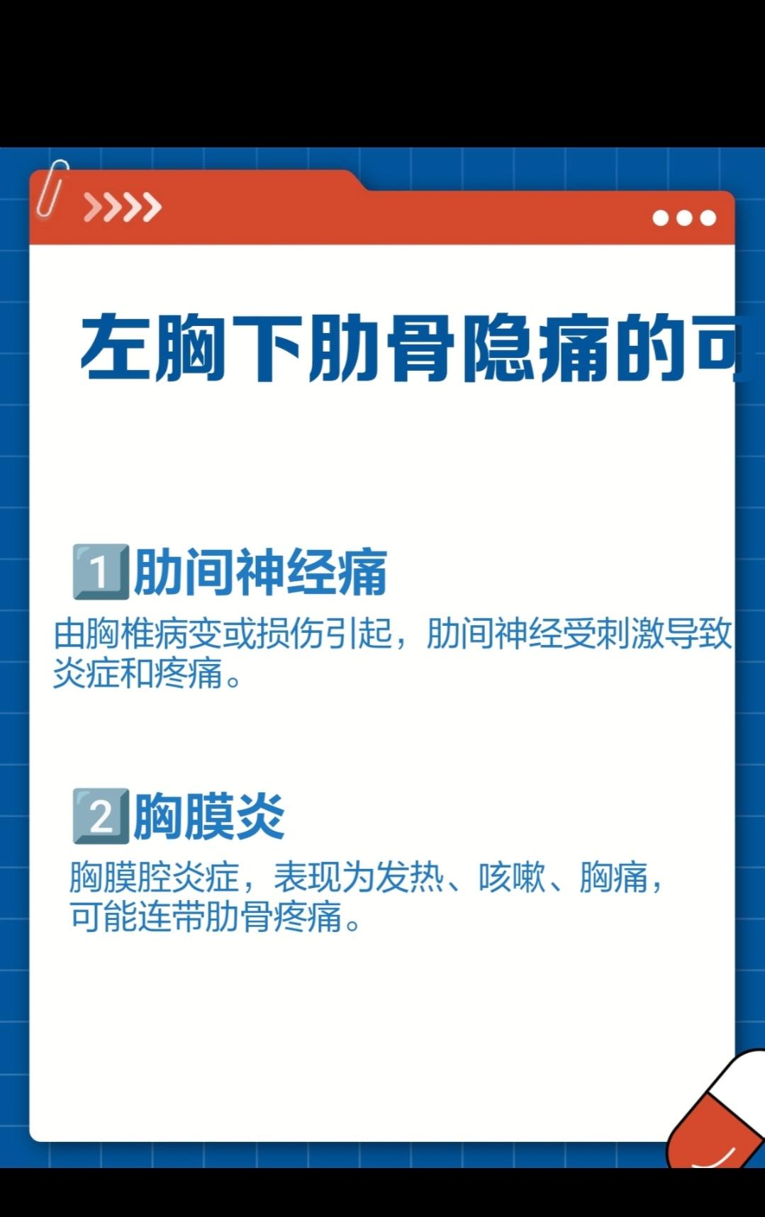 左胸下肋骨隐痛,原因竟有这么多?!你有没有过这样的经历:左胸下面的肋骨处突然隐隐作痛,让人心里直犯嘀咕,这到底是咋回事呢?🤔别急,今天咱们就来好好扒一扒这个让人头疼的小状况!