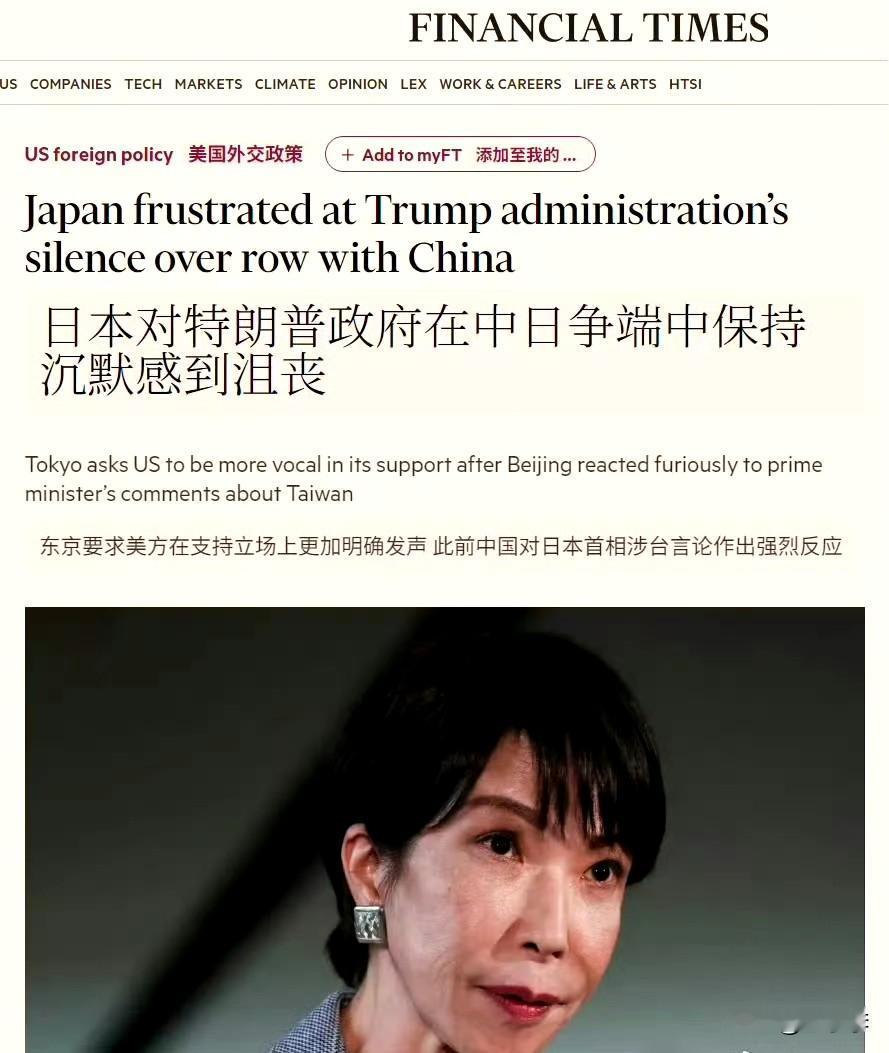高市早苗内阁对于特朗普未就她涉台错误言论给予公开支持感到“极度失望”。 本来美国人的驻日本大使跳得很凶,然后特朗普打电话批高市早苗一通后,美国人外交系统也不敢跳了。 美国现在估计在千方百计搞脱钩,在脱钩完成前,不想日本挑起事端。 一名日本官员表示,东京方面不相信美国对日本的承诺会动摇,但他补充称,华盛顿高层官员缺乏公开支持让日方深感失望。 美国能卖了乌克兰,为什么不能卖日本?美日发联合声明攻击中国 中方回应
