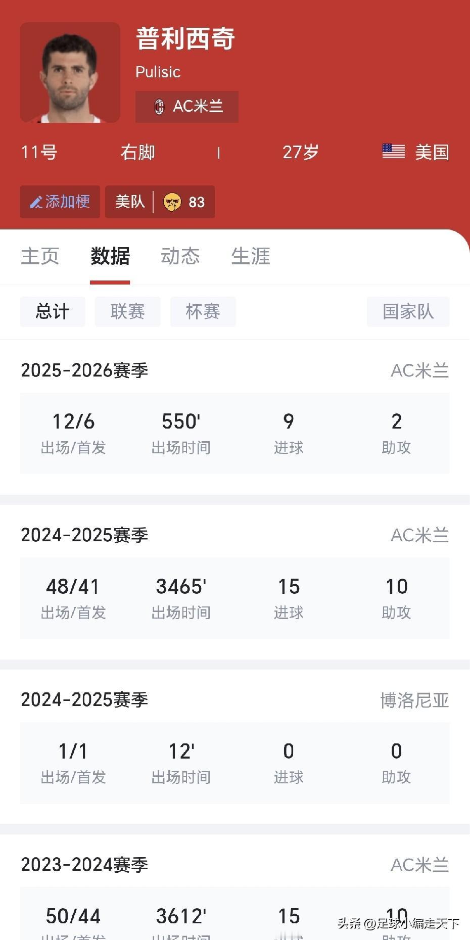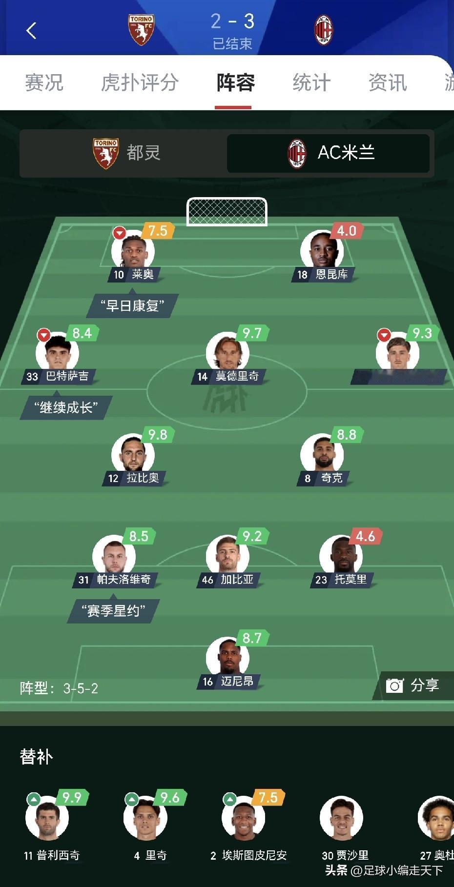 这支米兰有点冠军相了!难道真的要复兴了吗?这场让二追三终于又重回榜首了。 不能不说美队带病上场10分钟连追2球忒牛逼了。普利西奇这赛季的个人数据,14脚射门就进了7个,这转化率也太恐怖了。 其实看了直播的球迷才是最激动的,2球落后时,米兰还在后场慢慢倒脚,以为输定了!还好拉比奥特世界波扳回一个。下半场进攻开始起势,局面反转,美队扳平后气势上来了,就觉得能赢,美队又进了一个。打弱队,米兰完全可以放开干,把美队,莱奥,恩昆库,拉比奥特等的进攻能力发挥出来。352这个打法让前锋们机会廖廖,难以发挥!美队天神下凡拯救米兰! 最后还是那句话冬窗买个好中锋,这赛季意甲冠军就有戏,自从大吉鲁走了后连个稍微像样的中锋都没有。