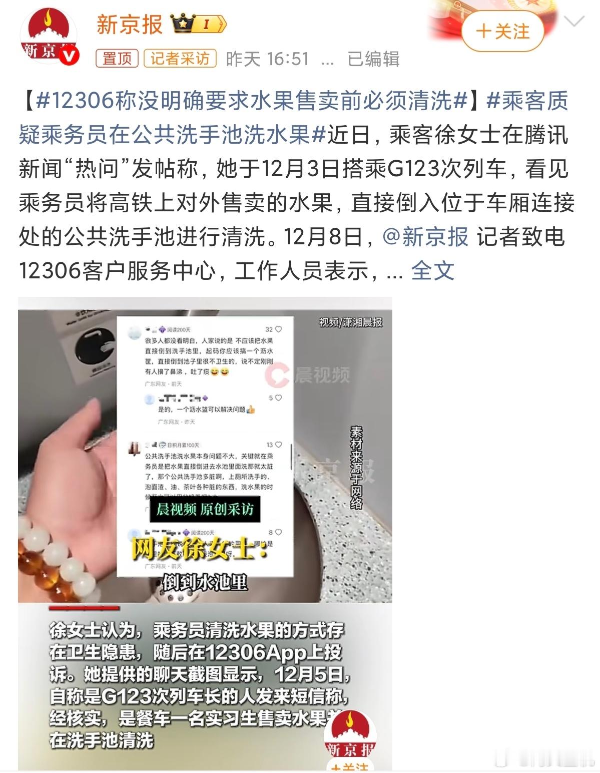 12306称没明确要求水果售卖前必须清洗真矫情,自来水洗一下水果咋了?日常大家都是这么过来的吧?咋坐个高铁要搞特殊?
