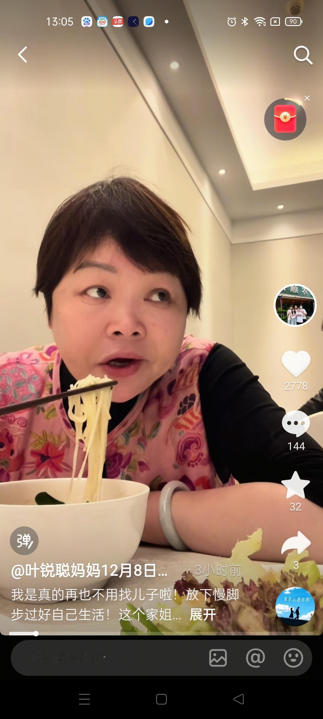 叶锐聪妈妈再也不用满天底下找儿子了,她可以放慢脚步,好好的享受一下漫时光了,叶锐聪妈妈说,自己的老公猪头和梓晴好好的做牛马,妈妈就可以满天底下到处浪了,言外之意他们好好工作,妈妈没事的时候出去带带货,浏览一下祖国大好河山,祝福叶锐聪妈妈,从此一家人整整齐齐,幸福常伴!