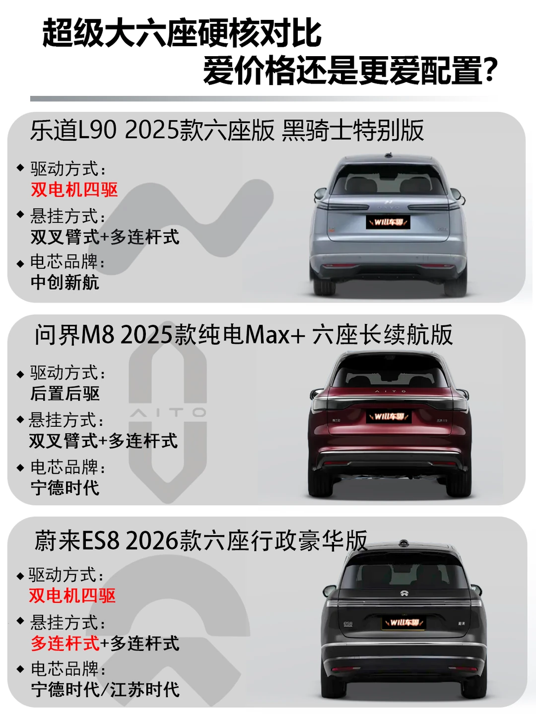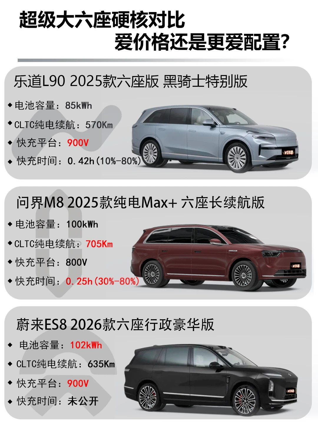 · 乐道L90 在价格、快充与智能化配置上展现高性价比,适合追求科技与实用均衡的用户。