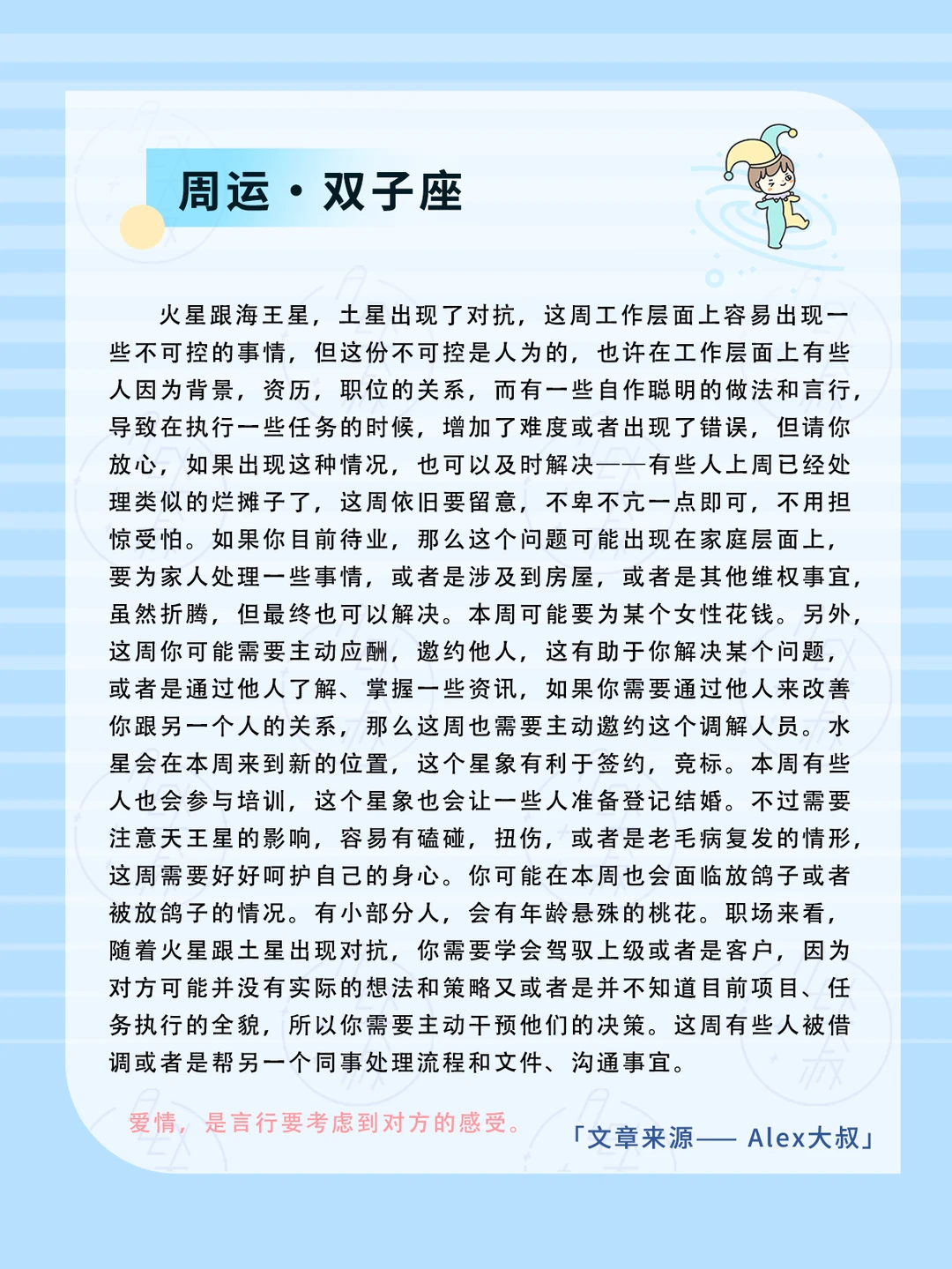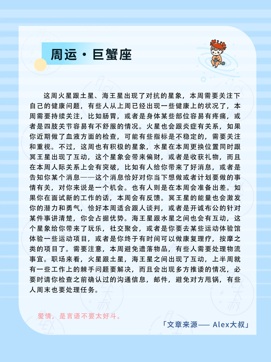 如果在本周你遇到了这种情况,或者你预判到可能存在这类倾向的风险,建议你可以暂缓处理和推进这件事,因为这周天王星的能量也会被激活,预示着这类事情还存在变数,如果确实不存在“很匆忙”“很紧迫”的时效性的话,暂缓推进或者跟某个人沟通也未尝不可。