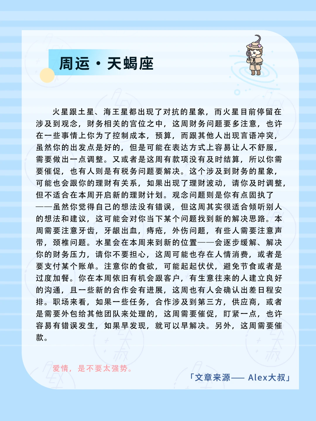 火星会跟海王星也出现对抗星象,容易出现丑闻,这个丑闻可能涉及到情感,私生活,性,金钱贿赂相关,也许本周就会有此类型的新闻事件出现。