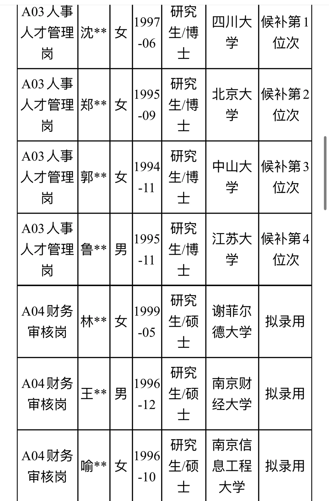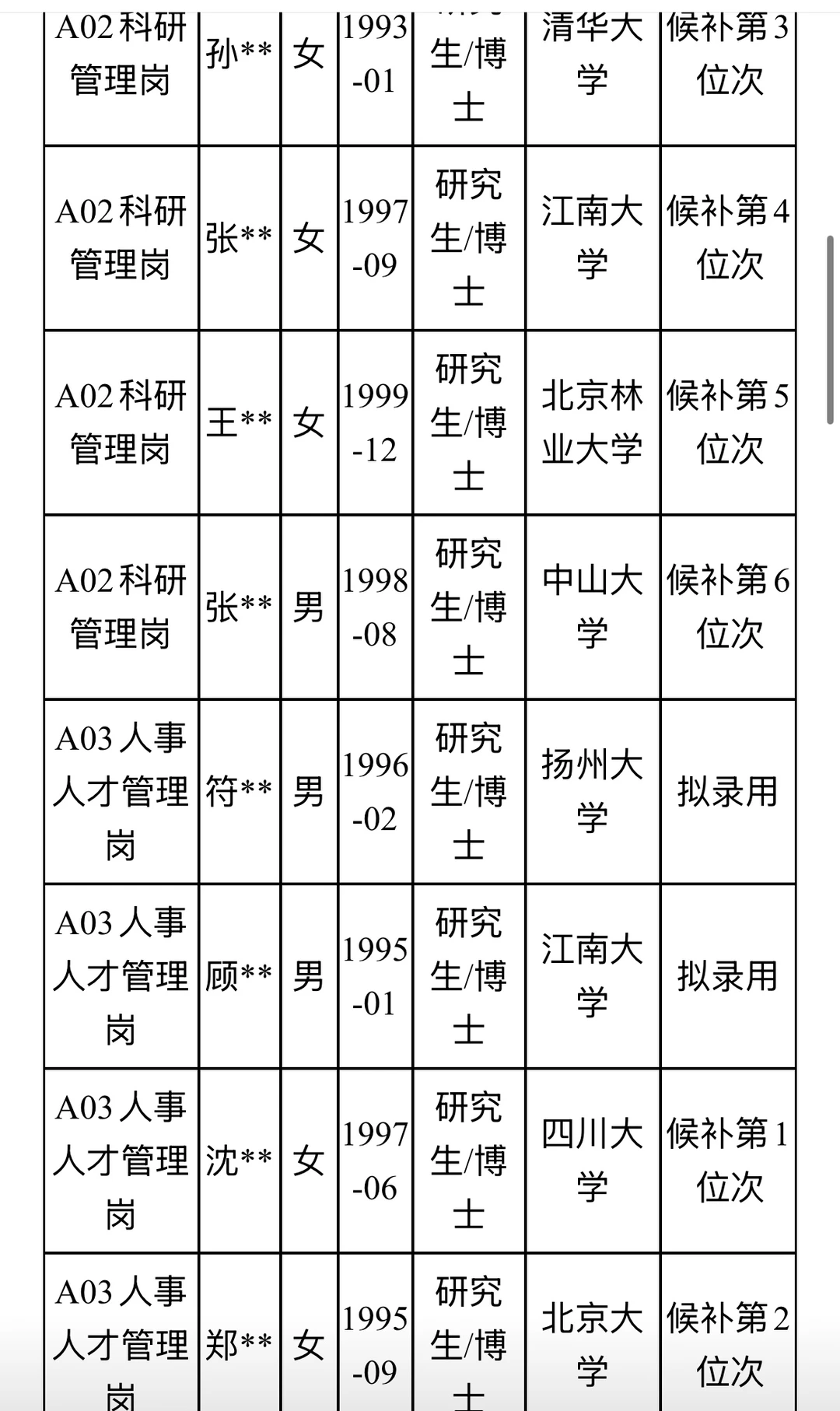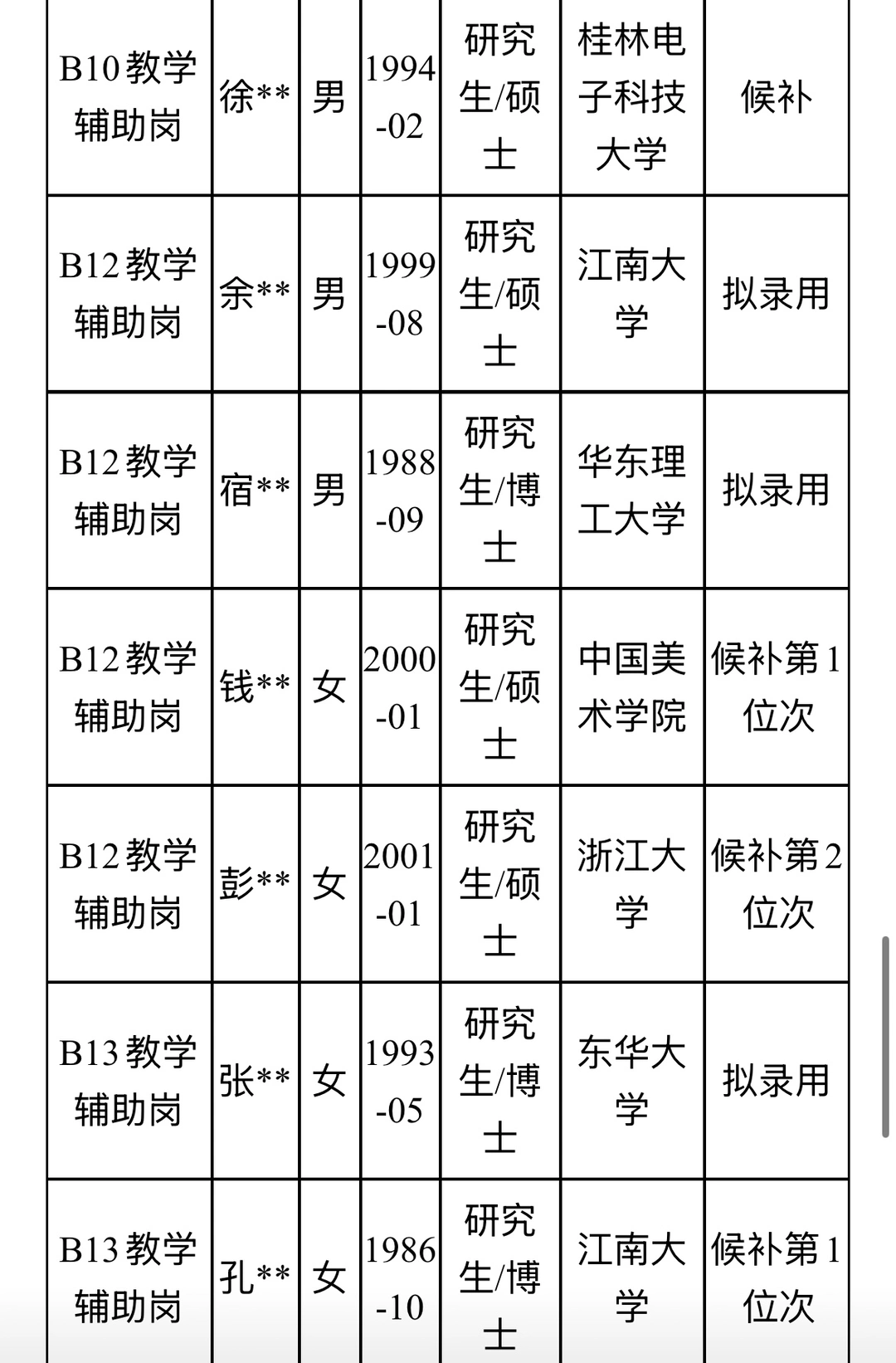 根据《江南大学2025年下半年管理岗、其他专技岗招聘公告》相关要求,经资格审核、综合考核,拟录用乔**等23位同志,赵思佳等30位同志为候补人员。