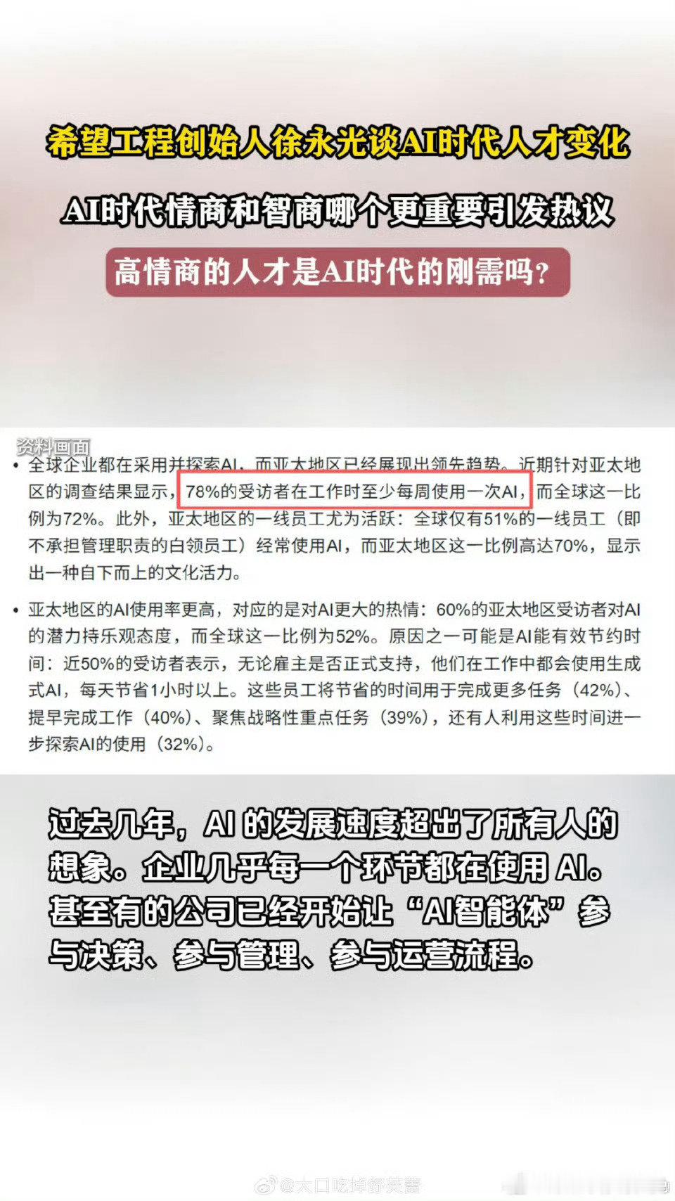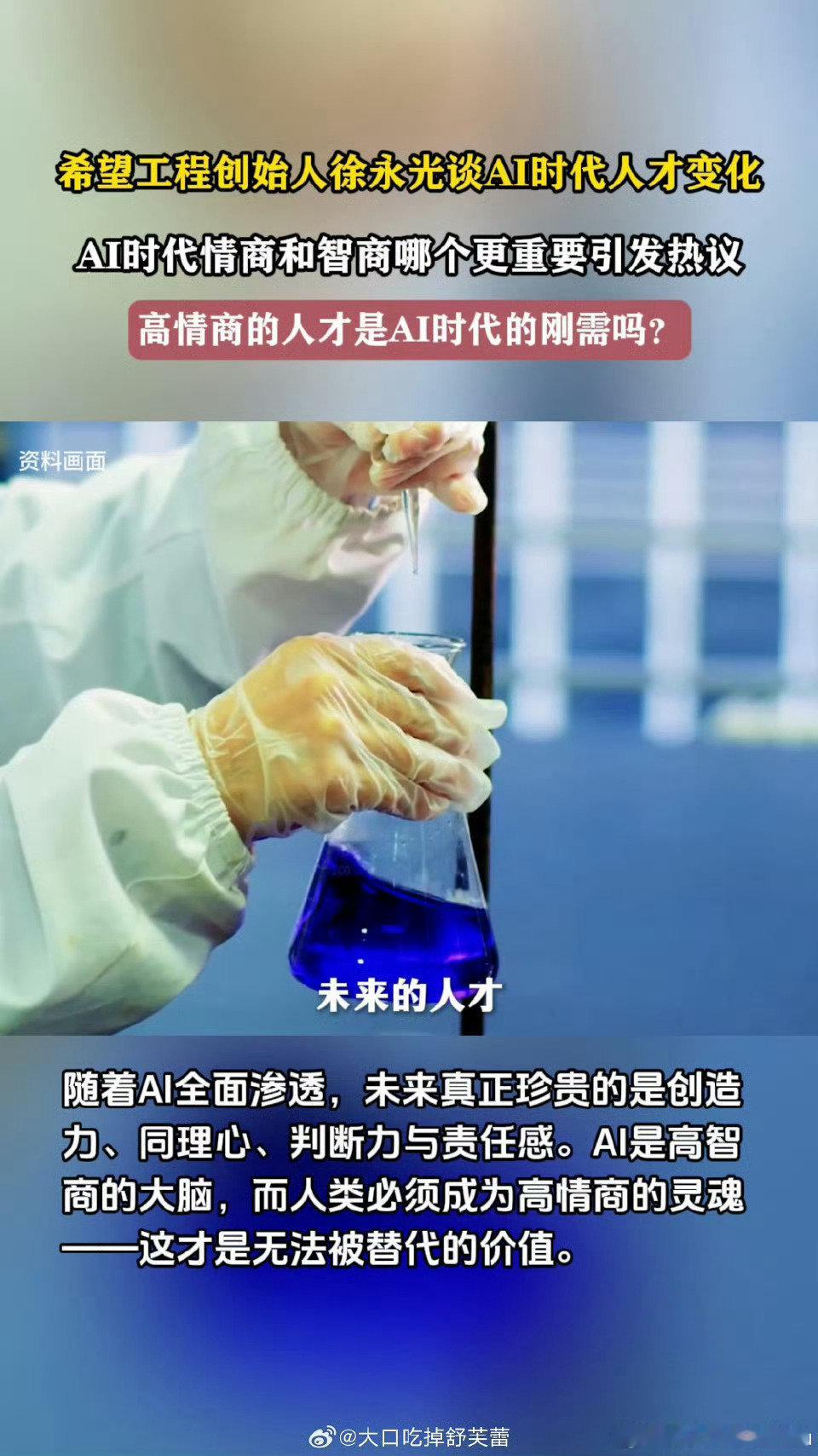 AI时代智商定专业下限,情商拓发展上限。机器可替代标准化工作,而情绪管理、人际协调等软实力,才是人类不可替代的核心竞争力。