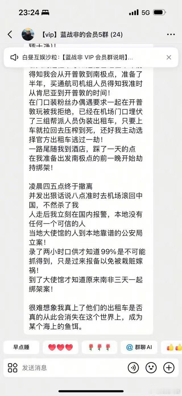 蓝战非团队人员回应南非绑架事件在国外旅游的,骑行的,徒步的,不少了,主要是很多人没他有钱呀,他这么有钱,又是个网红,喜欢全球到处跑,路线什么的基本上都可以判断,而且他还喜欢自己一个人出去,不带同伴,跑的地方不少都是又落后又危险的,还喜欢徒步,上次不也是差点出意外,也是真的很勇,哪天凉了,我真不意外。