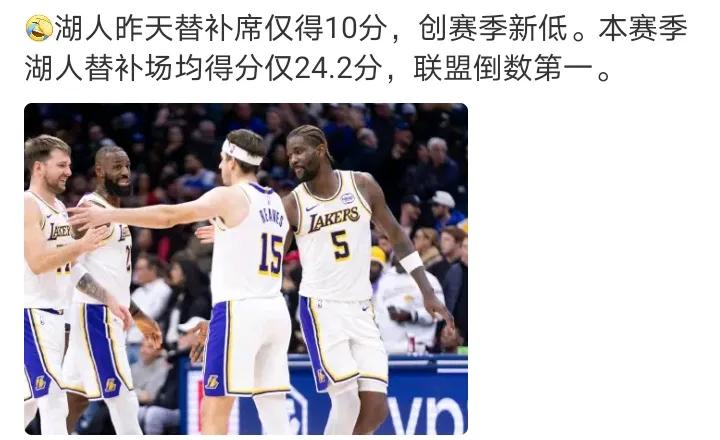 看湖人的替补席 不能用单纯的得分评判 得分低不适合衡量他们强弱 因为湖人本来就是48分钟全覆盖的三巨头其中一人持球在手,一定会弱化替补席的戏份。而且,就目前的框架下,替补换谁,效果都差不多,因为总出手数分配的很清楚。三巨头都能得分串联球队,都能带着替补打。替补也确实一般,湖人是一支拉满主力赢比赛的球队,打的就是球星篮球。