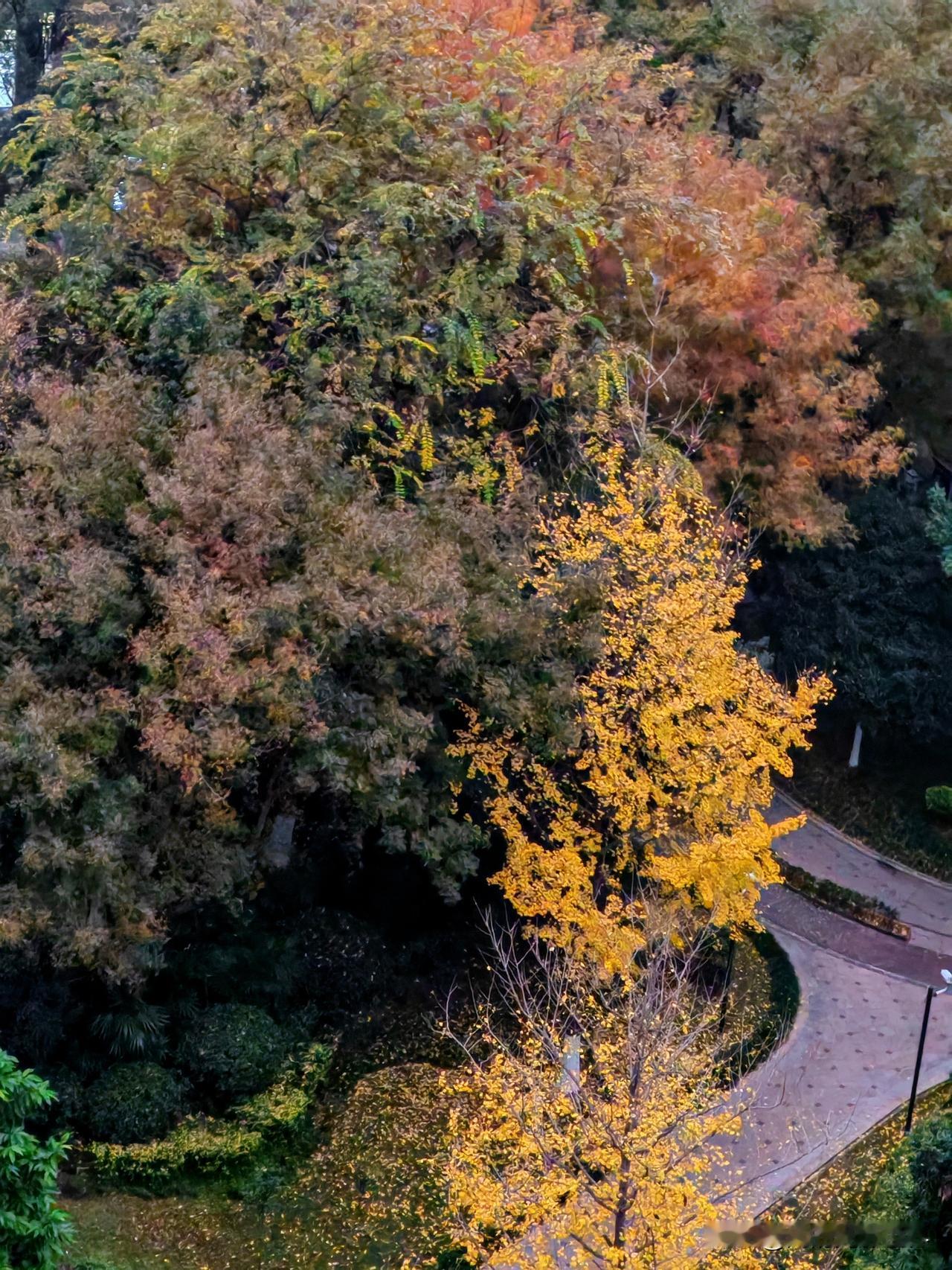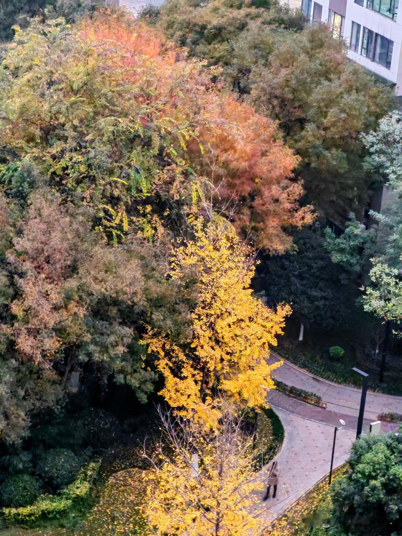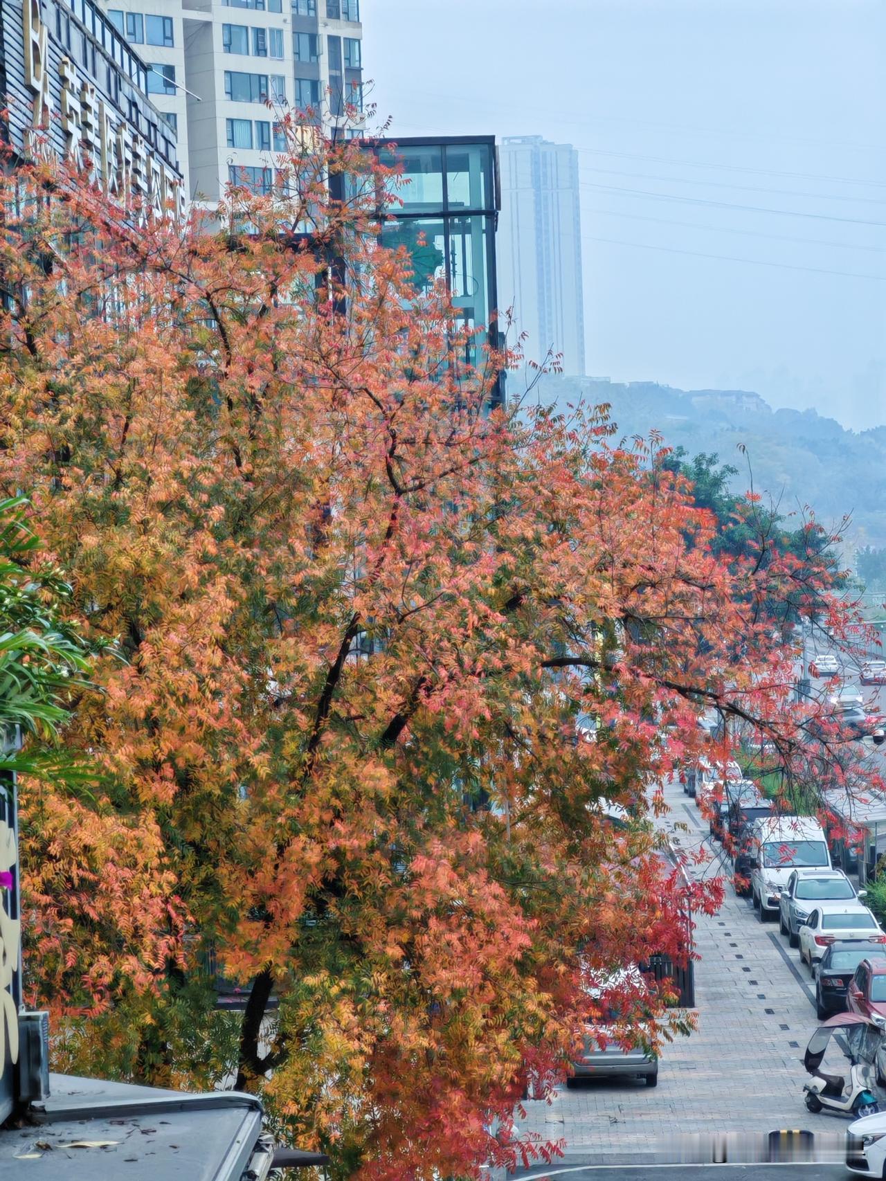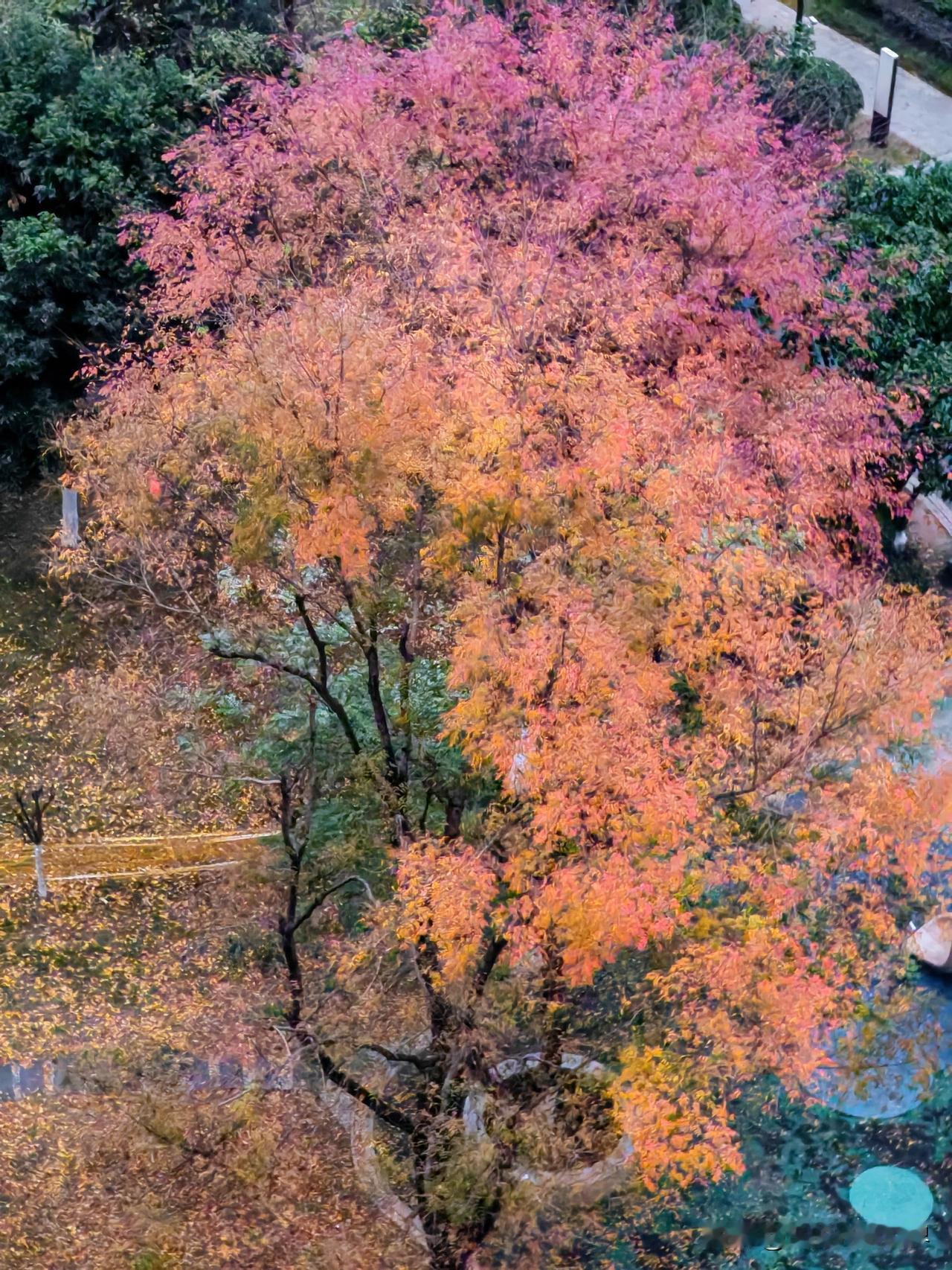 重庆12月有秋色,小区里的红叶树,真的美成了一幅油画! 风一吹,满树的红叶沙沙作响,像是在诉说着秋的故事。就如李煜诗里说的“冉冉秋光留不住,满阶红叶暮”,那景象美得让人心醉。 这红叶树让我想起祁崑画里的疏林红叶,不用浓墨重彩,却自有一番韵味。那红不是热烈的,而是带着点涩与寒。阳光洒下,红叶闪烁着光芒,地上也落了不少,踩上去软绵绵的。 在这喧嚣的城市里,小区的红叶树就像一处宁静的港湾,让人能静下心来感受秋的美好。随手一拍,都是绝美的壁纸,这大概就是重庆初冬里宛如秋天最浪漫的馈赠吧。