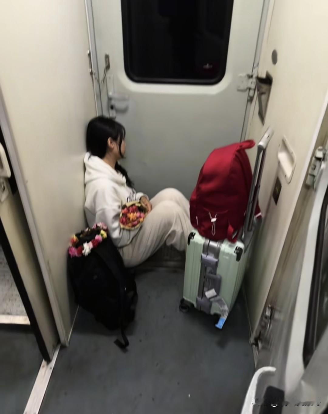 手捧着鲜花,蜷缩在车厢的走廊过道里沉沉的睡去,梦见也许畅想了无数遍见面的情景,她一定很爱很爱那个男孩子吧……