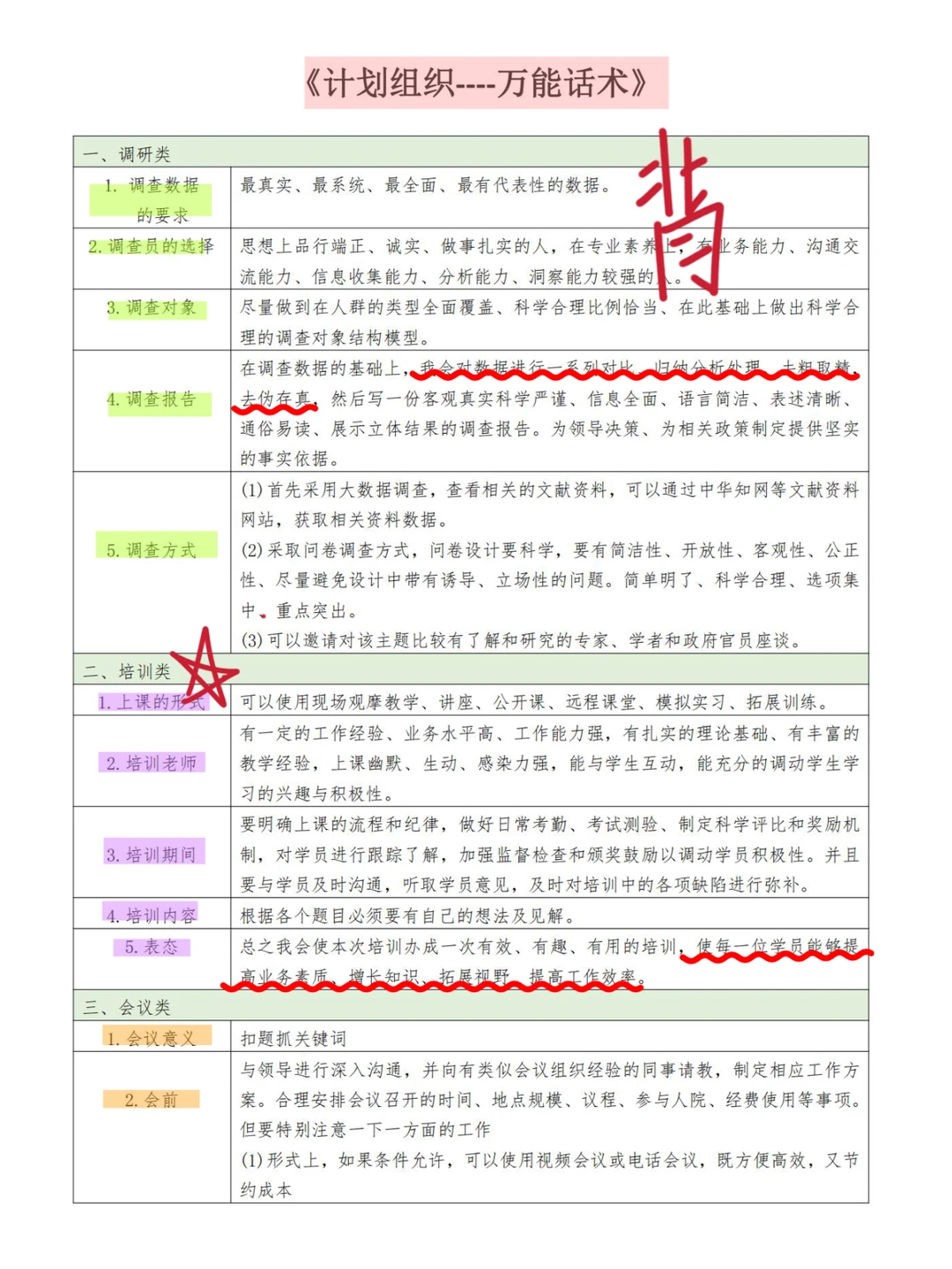 调研、培训、会议类工作安排,话术细致全面📊。调查数据要真实系统,培训老师得选业务强、教学好的,按这来,组织工作妥妥拿捏🤌。