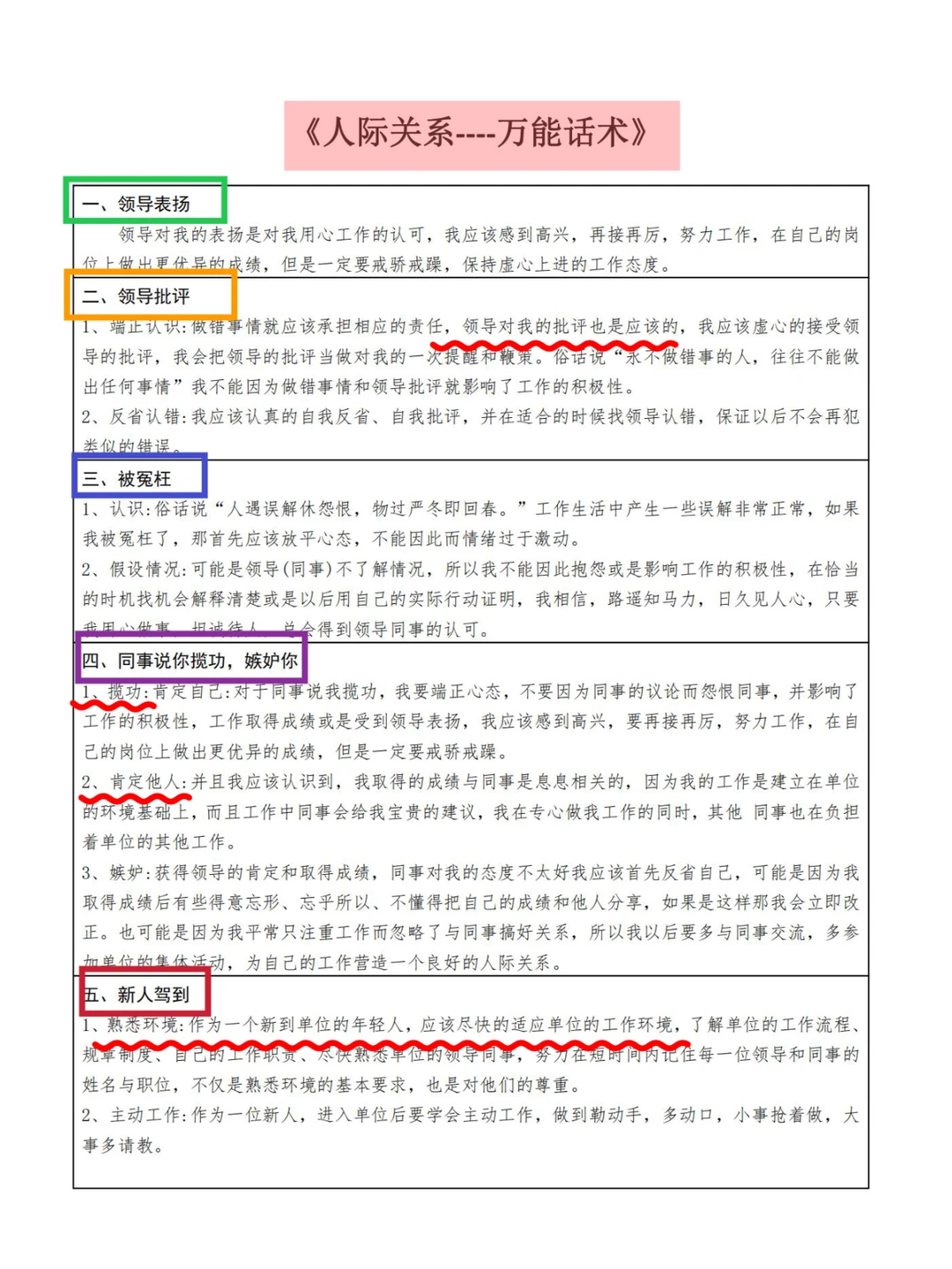 职场如江湖,人际关系是门大学问🤝。不管是领导表扬、批评,还是被冤枉、遭同事嫉妒,这里都有超实用话术。像面对领导批评,端正态度虚心接受,把它当成长鞭策,瞬间展现高情商💯。