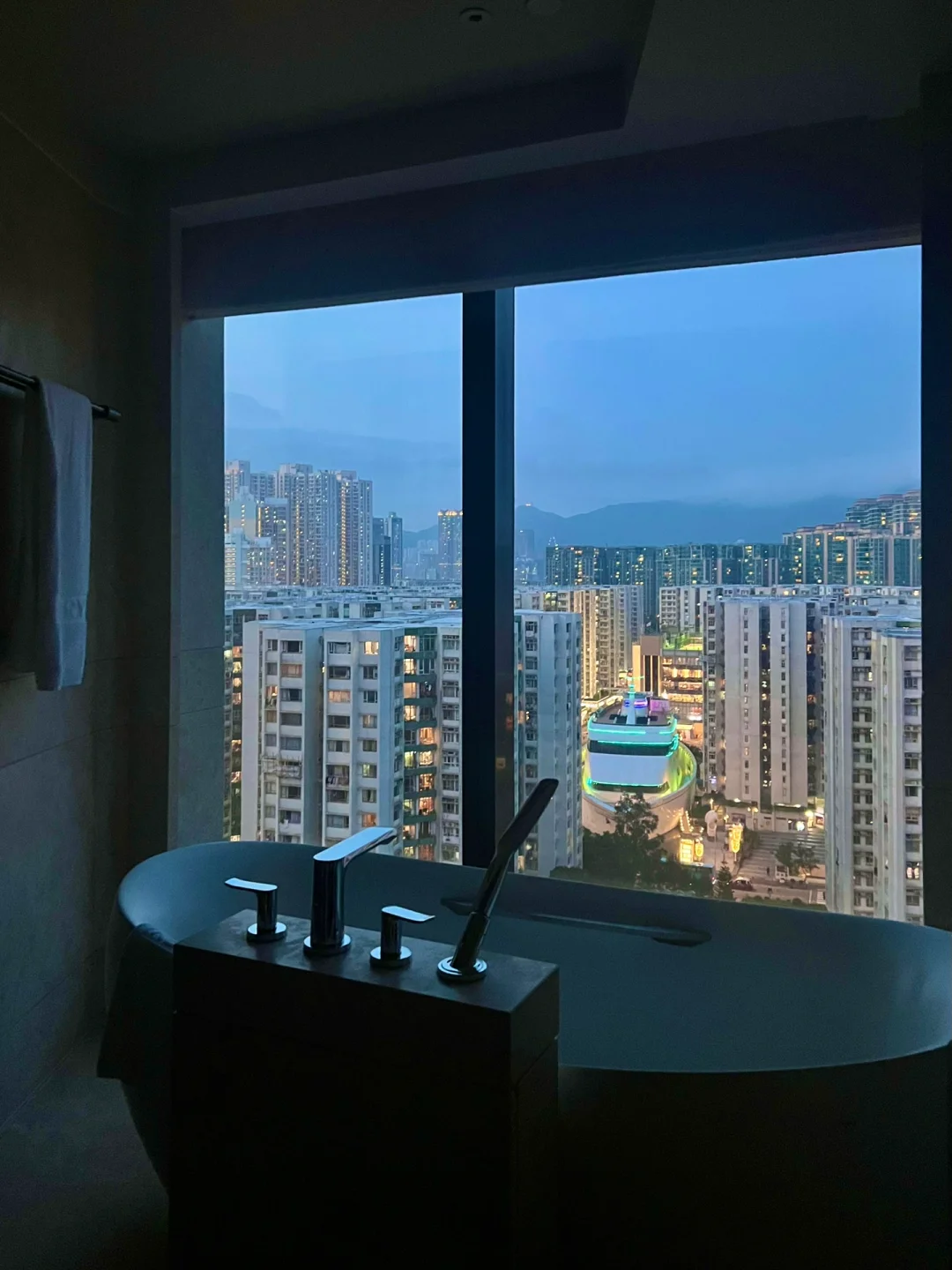 这次的房型浴室里可以看到“城市巨轮”,傍晚时分,巨轮的灯亮起有种ins高级风