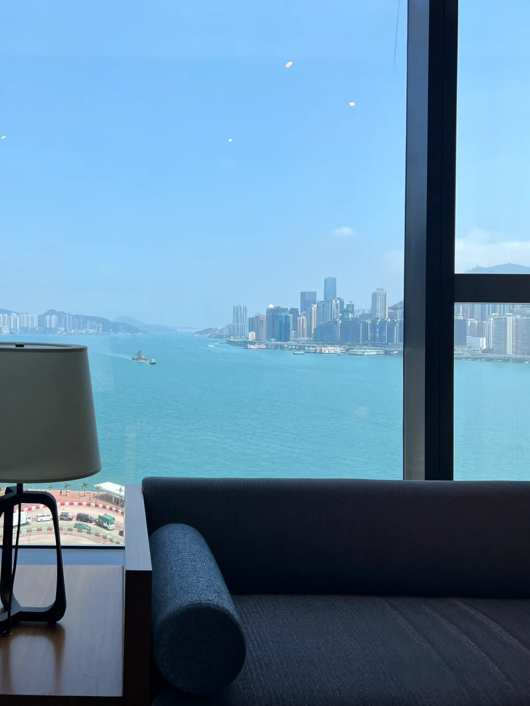 之前就慕名而来打卡过房间里的绝美落地窗维港海景