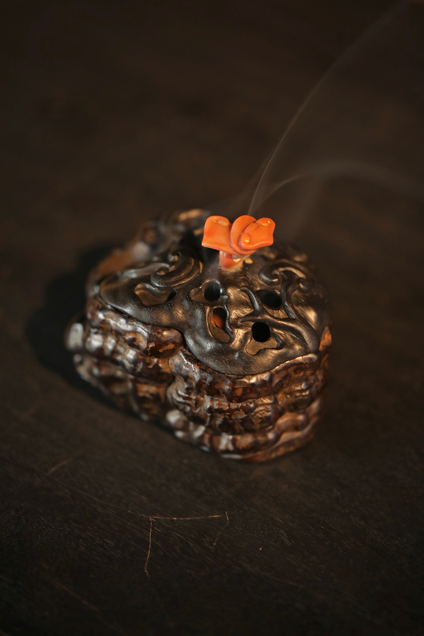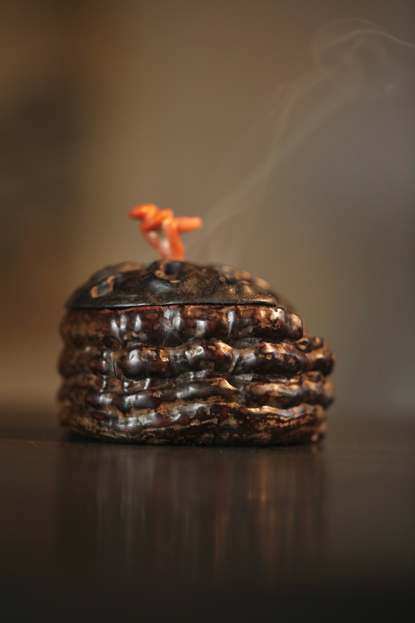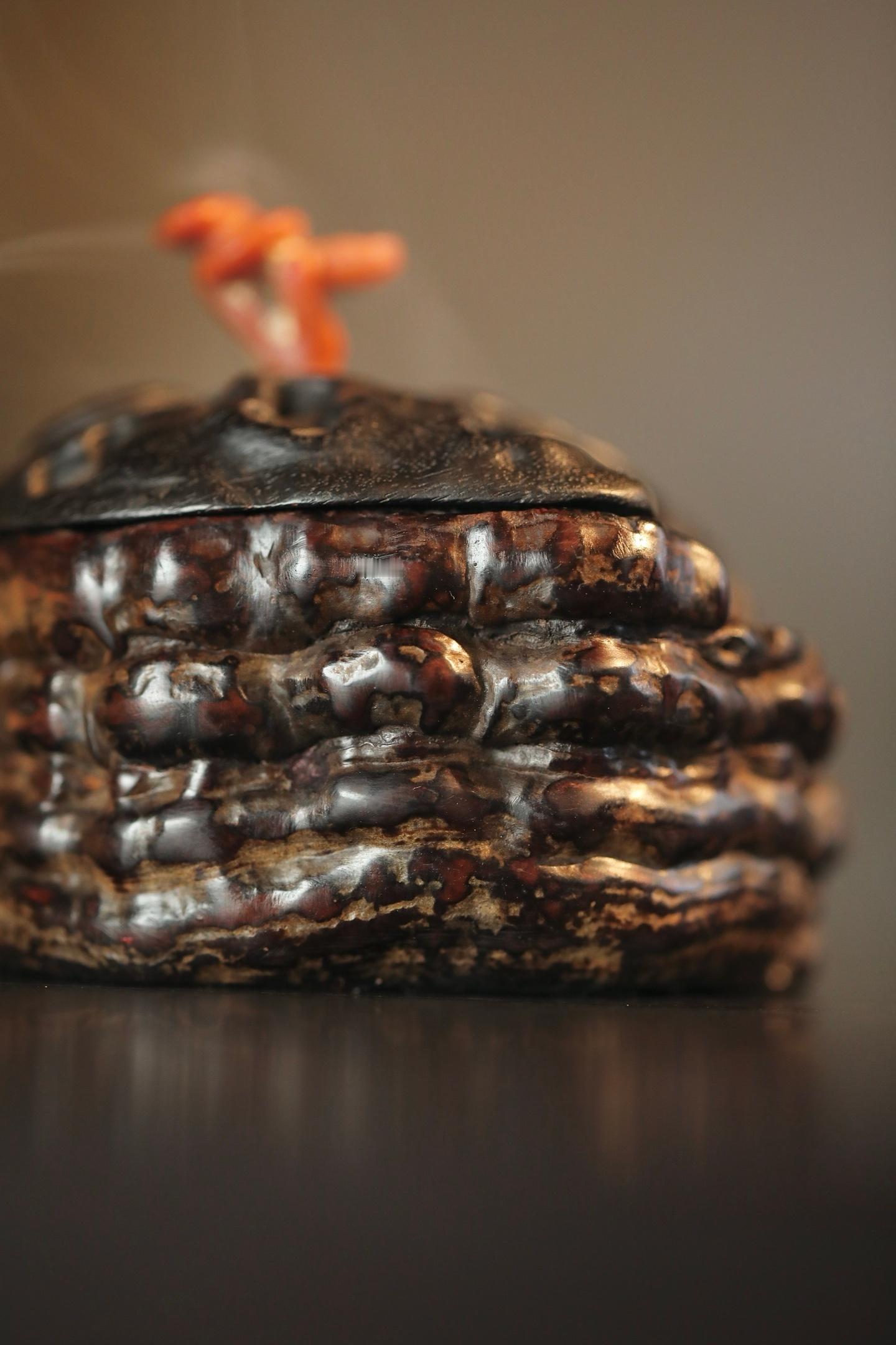 天然灵芝 | 香炉天然灵芝随形掏挖。保留了灵芝的天然肌理,若山石纍纍,清趣盎然,通体包浆浑厚,造型自然而古朴,文人气十足。9.1×6.9×7.6cm