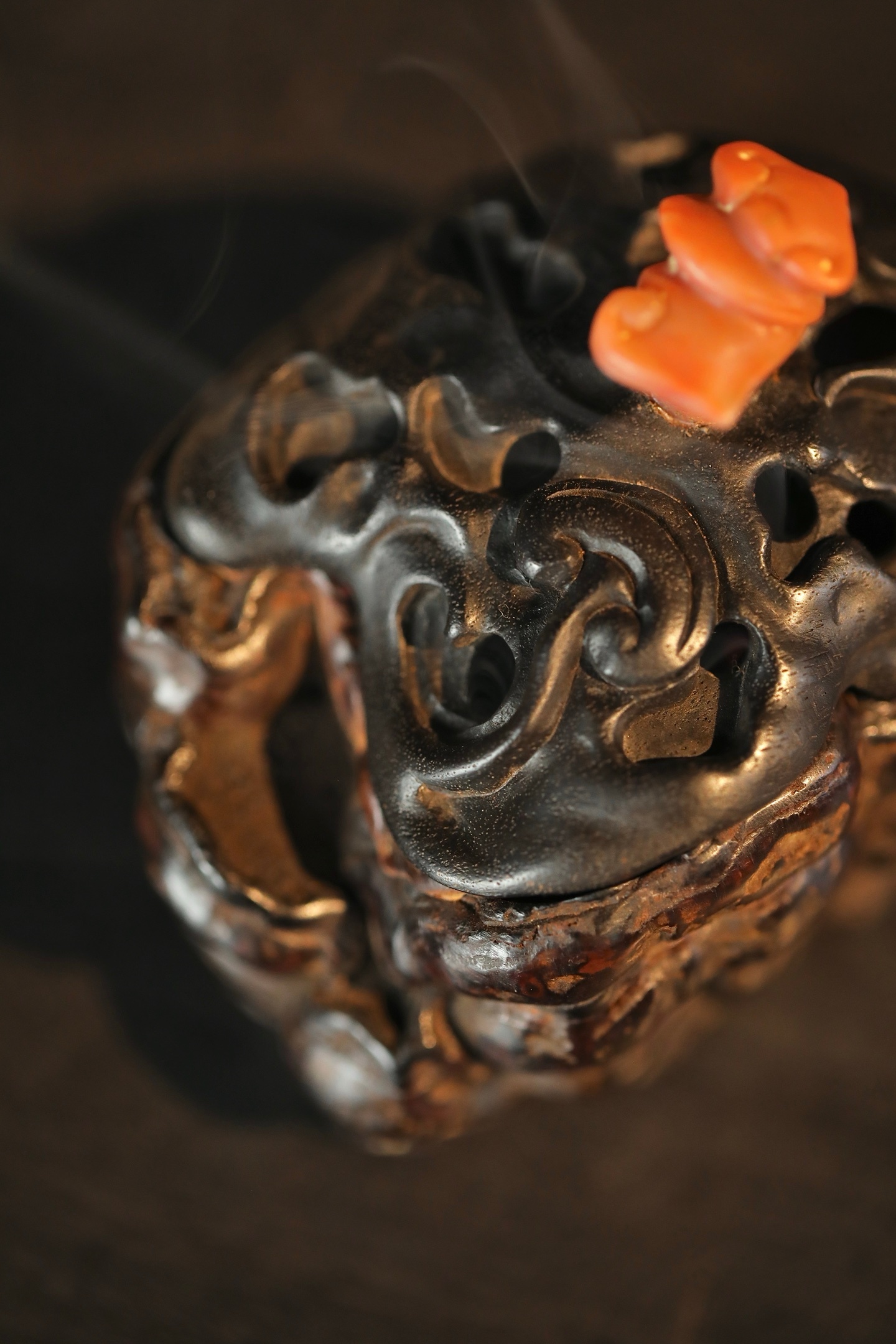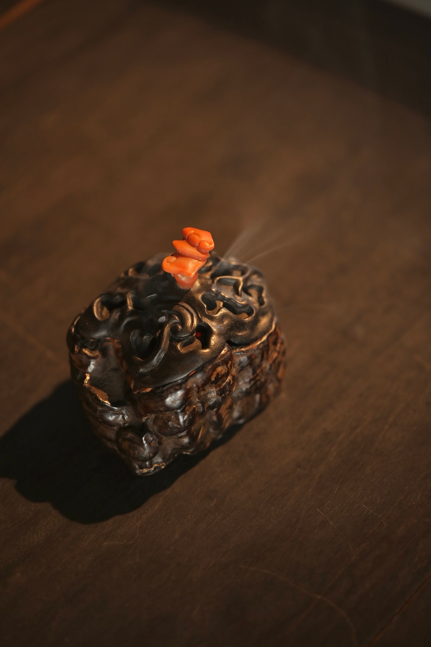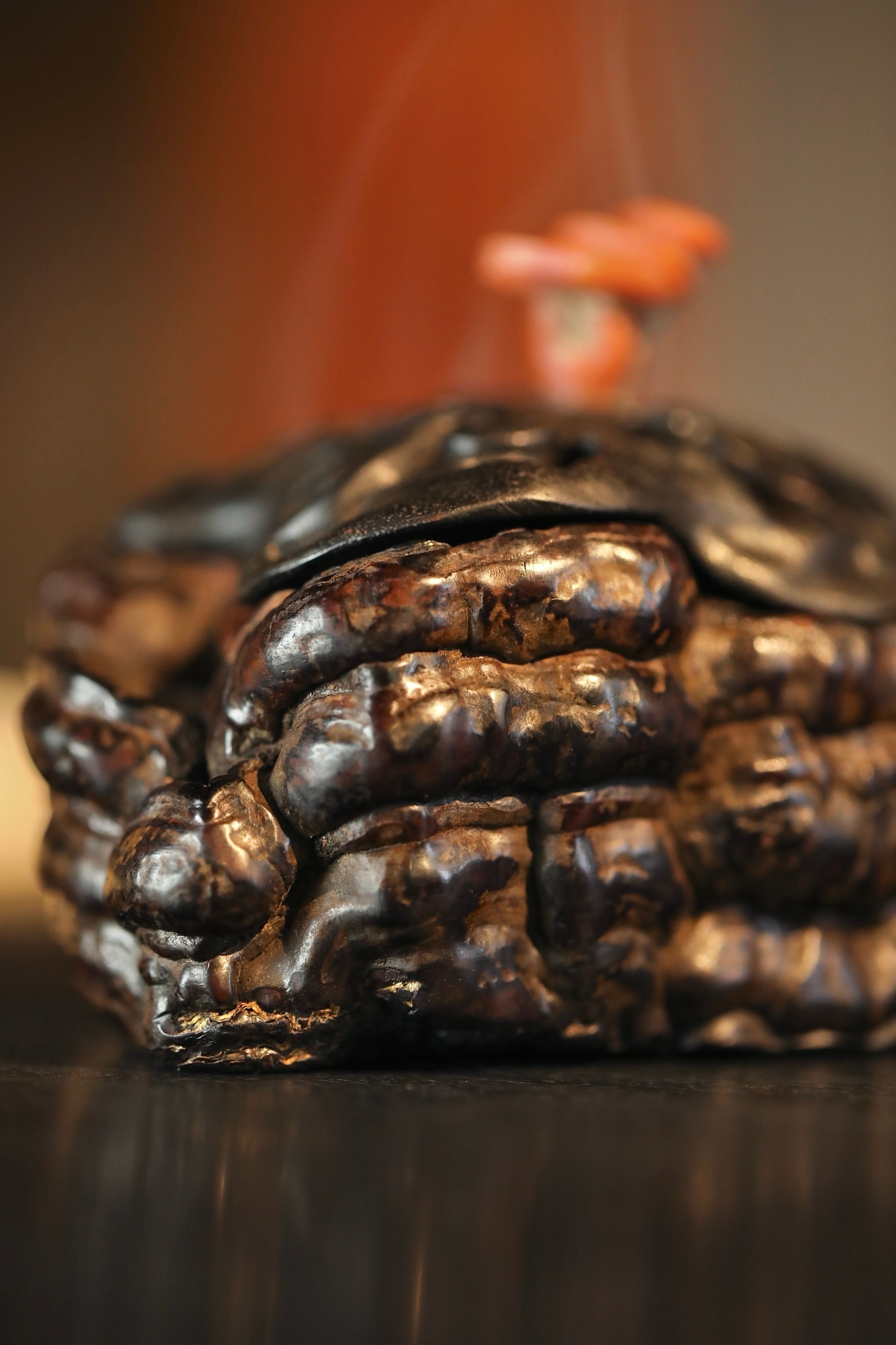 天然灵芝 | 香炉天然灵芝随形掏挖。保留了灵芝的天然肌理,若山石纍纍,清趣盎然,通体包浆浑厚,造型自然而古朴,文人气十足。9.1×6.9×7.6cm