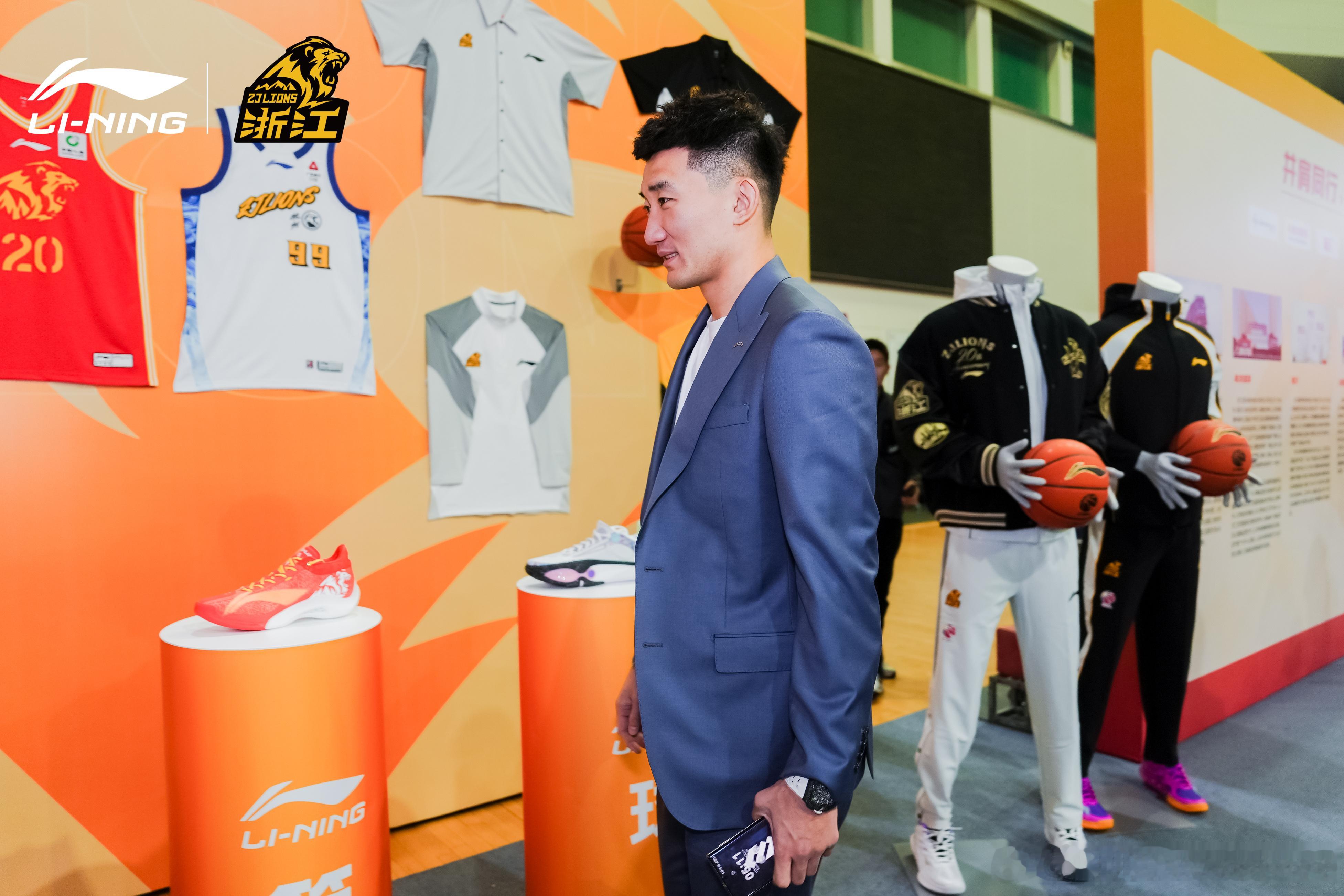 李宁篮球与广厦俱乐部达成战略合作发布会现场展出了为广厦总冠军精心打造驭帅20纪念