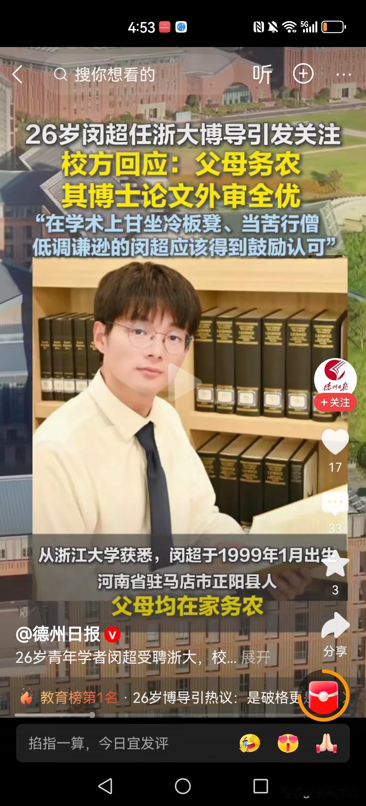又出牛人!河南26岁小伙已经做到了浙江大学“新百人”计划研究员、博士生导师! 26岁,别人硕士还没毕业呢,人家直接干到了博导!真是太牛了!浙大博导 青年博导 浙大博士 浙江博士 奇葩博士生 浙江博士后 浙江顶尖人才