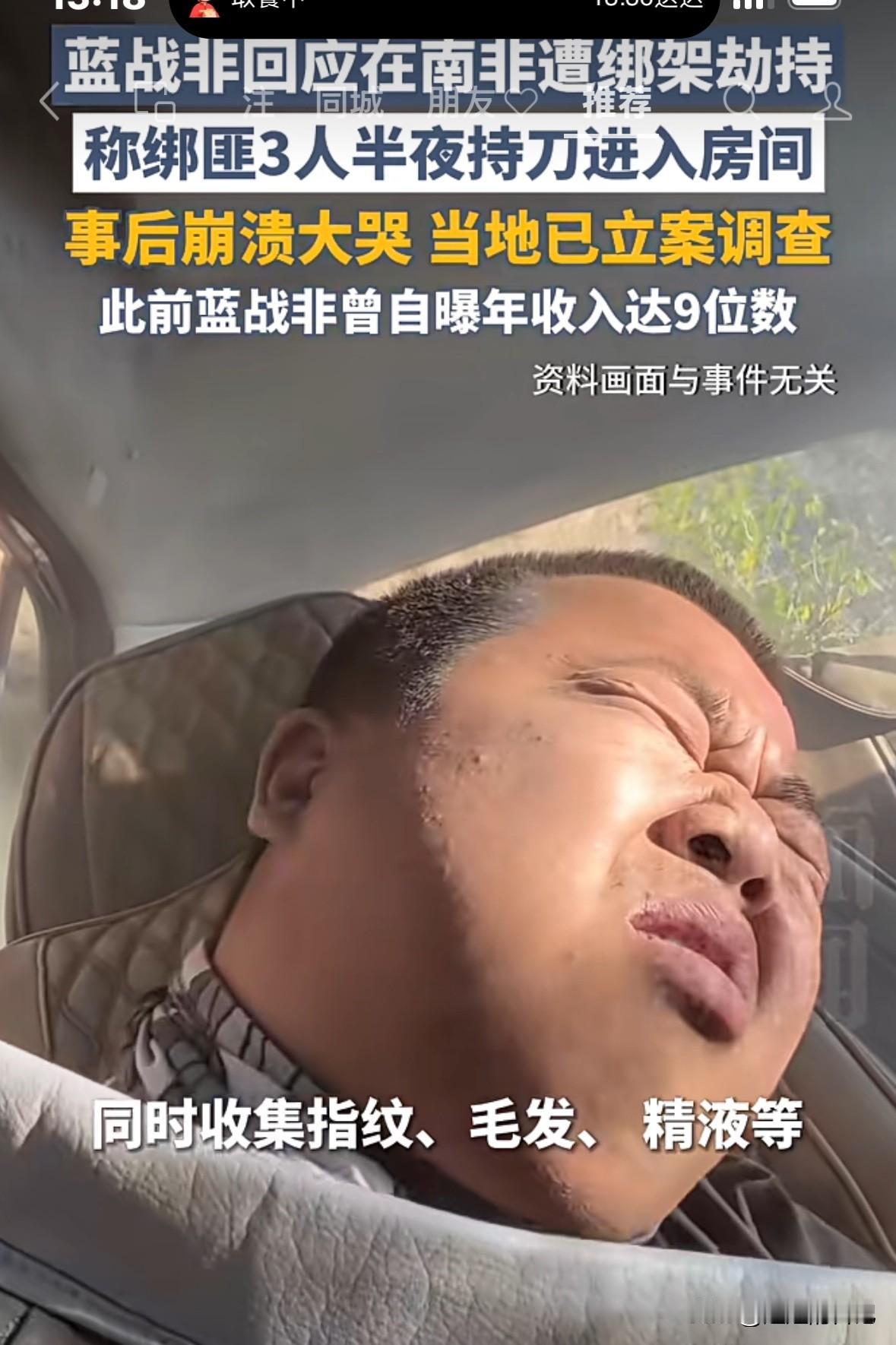 蓝战非就是祸从口出,从他进入南非,就被人家三次设计绑架,只是他经验丰富,没有让对方得逞。 半年前,这个人就开始计划绑架的实施行为, 蓝战非第一次躲过,是绑匪装作偶遇的粉丝,邀请他一起旅行,他拒绝? 第二次,对方假扮运营车辆,邀请他乘坐,蓝战非选择拒绝, 第三次,对方买通酒店前台,拿到房卡,直接进房间实施了绑架抢劫的行为。 从蓝战非自己透露的细节来看,对方还是有机会被抓住的,不然他们也不会做那么多假象。 蓝战非现在想低调也没办法低调了,还不知道有多少人在惦记他的财富。 这样的事情,他自己早有预料,好在没有生命危险,就怕下次没有这样的好运。 他最好到方式就是,改变现状,回到国内,好好工作,过段时间再去旅行,而且要低调行事,或者带着保镖了。 旅行是非常美好的,世界各地的风景有机会去看,是所有人的梦想,但是,这个世界总会有不美好东西,随时就会出现。 安全第一,活着才有机会实现梦想!