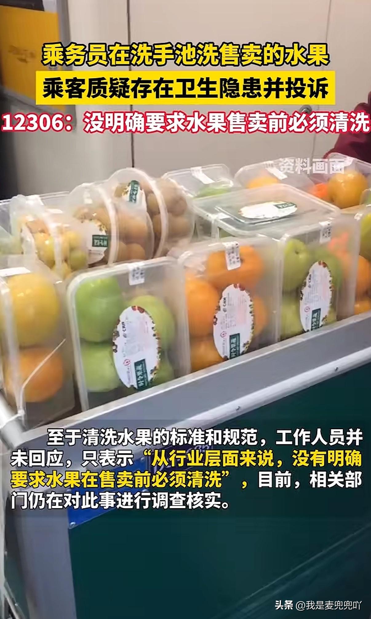 女子投诉火车乘务员用厕所旁公共洗手池洗水果后向乘客售卖太脏 12306表示已经与当班乘务员核实,当天确实有去车厢连接处的厕所边公共洗手池清洗售卖的水果但水果并没有直接接触到洗手池。还表示从行业层面来说并没有明确规定要求水果在售卖前必须清洗 双方各执一词女子投诉是说看见乘务员把水果直接倒在公共洗手池内清洗12306又说水果没有直接接触到洗手池而且按规定他们是可以不洗直接卖的 火车上的公共洗手池确实不干净我还见过有人往里吐痰、捏鼻涕如果真如乘客所说是把水果直接倒在里面洗确实很不卫生 大家坐火车如果买水果吃还是自己费点事再去洗一遍再吃更安心