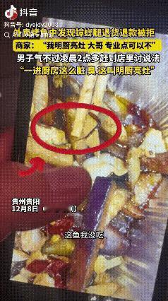 贵州贵阳,一男子半夜点了一份外卖烤鱼,发现里面有一条蟑螂腿,要求商家退款,商家回应“我明厨亮灶,大哥专业点可以不”。男子气不过,凌晨2点多赶到店里讨说法,一进厨房看到脏乱臭的景象,直呼“这叫明厨亮灶”。 男子站在厨房门口,当场掏出手机拍摄。灶台缝隙里塞满黑乎乎的油污,洗菜池堆着没洗的碗筷,墙角的垃圾桶敞着口,一股馊味直往鼻子里钻。他举着手机质问店员,对方却扭着头不吭声。 更让他火大的是,所谓的明厨亮灶,就是厨房装了个摄像头,镜头却对着干净的配菜台,灶台和角落全是盲区。店员支支吾吾,说摄像头坏了好几天,一直没修。 男子把视频发到网上,很快引来不少网友吐槽。有人说自己也点过这家店的外卖,吃完闹过肚子。还有人调侃,这明厨亮灶,亮的是“表面功夫”。 市场监管部门很快介入调查,上门检查时发现这家店多项指标不合格。商家这下没了底气,主动联系男子道歉退款,还愿意赔偿。男子没要赔偿,只希望店家能真整改,别再糊弄消费者。 这事也给其他商家提了个醒,明厨亮灶不是装个摄像头就行,真干净才是硬道理。消费者花钱吃饭,图的就是个安心,耍小聪明迟早要栽跟头。 各位读者你们怎么看?欢迎在评论区讨论。 来源:AHTV第一时间 2025-12-8采访