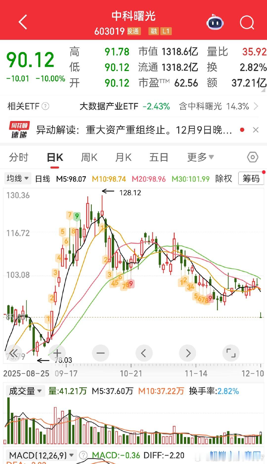 大牛股中科曙光今年不顺啊【重大资产重组终止 中科曙光竞价跌停】12月10日电,中科曙光今早竞价跌停,成交近10亿元,海光信息低开超3%。消息面上,海光信息公告称,公司于2025年12月9日召开董事会,审议通过终止通过向中科曙光全体A股换股股东发行A股股票的方式换股吸收合并中科曙光并募集配套资金的议案。