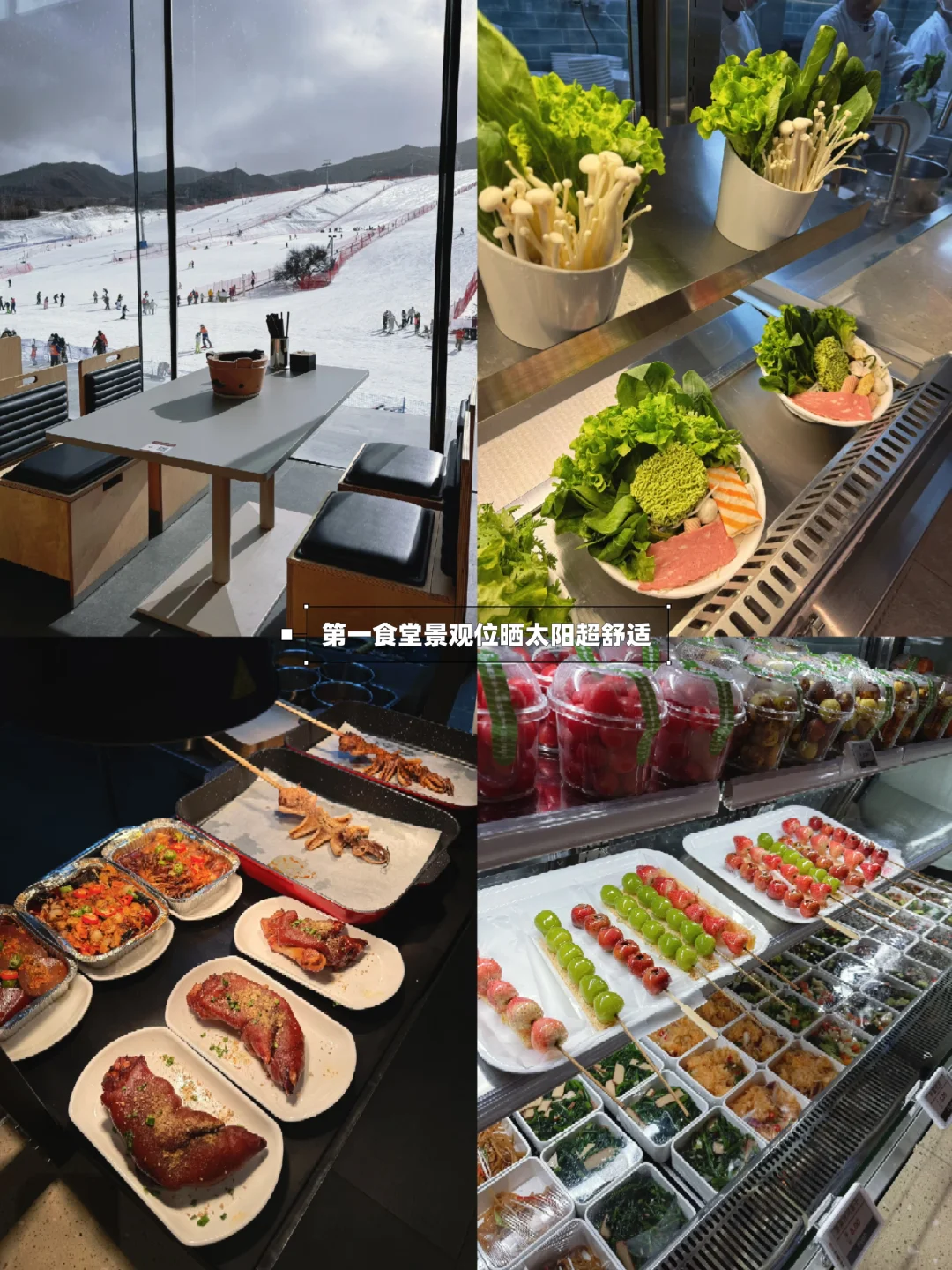 可以边吃边晒太阳 落地窗可以直接看到雪场
