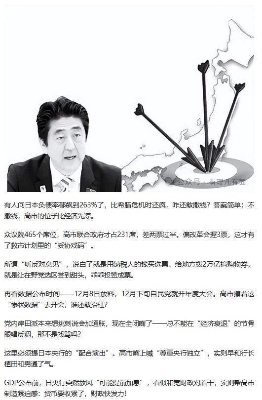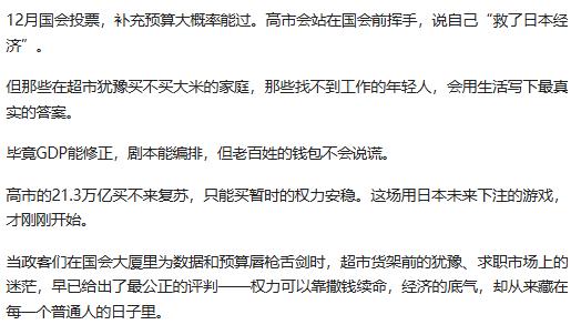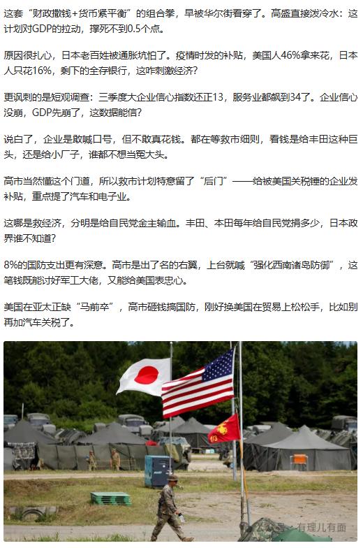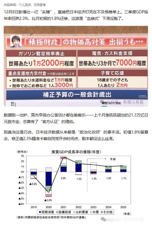 日本 GDP 大跌 2.3%,21 万亿救市计划登场,高盛预测拉动效果不足 0.5%,经济困局难解,这场操作究竟是救市还是为政治铺路? 原文来自:有理儿有面《日本GDP崩到“连滚带爬”!高市撒钱救》