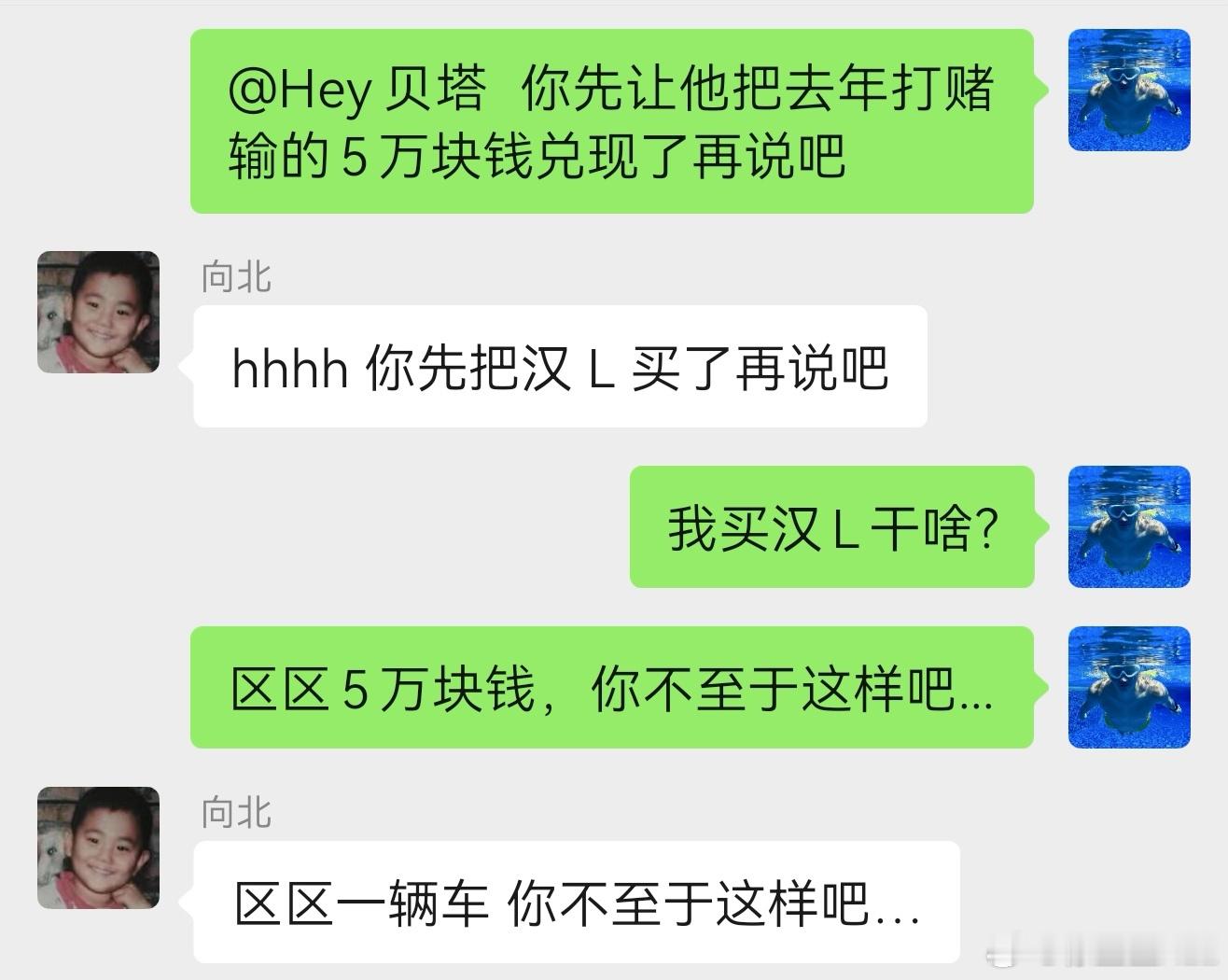 是他自己要拿山区儿童打赌的。说谁输了就捐5万。结果时至今日山区儿童也没收到捐款。还要我先买车再说。怎么你卖车有提成,赚够了才捐吗?哪怕捐个5块钱,PS成5万我都会对他肃然起敬。