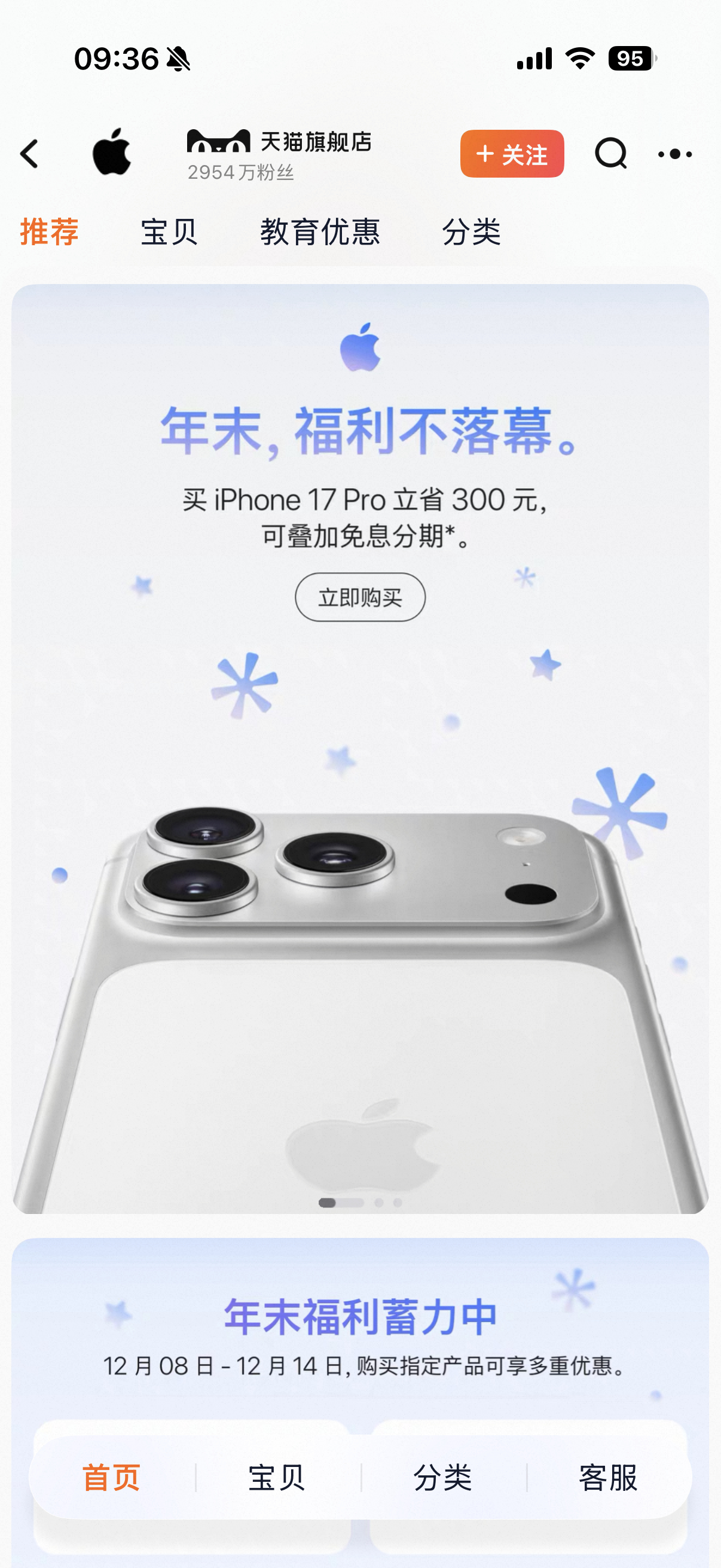 iPhone 17 Pro 系列官方降价了天猫官方旗舰店直降 300 元:256GB 的 Pro 从 8999 元降到 8699 元起,Pro Max 则从 9999 元降到 9699 元起。评论区来晒晒你们的 17 系列多少钱入手的?