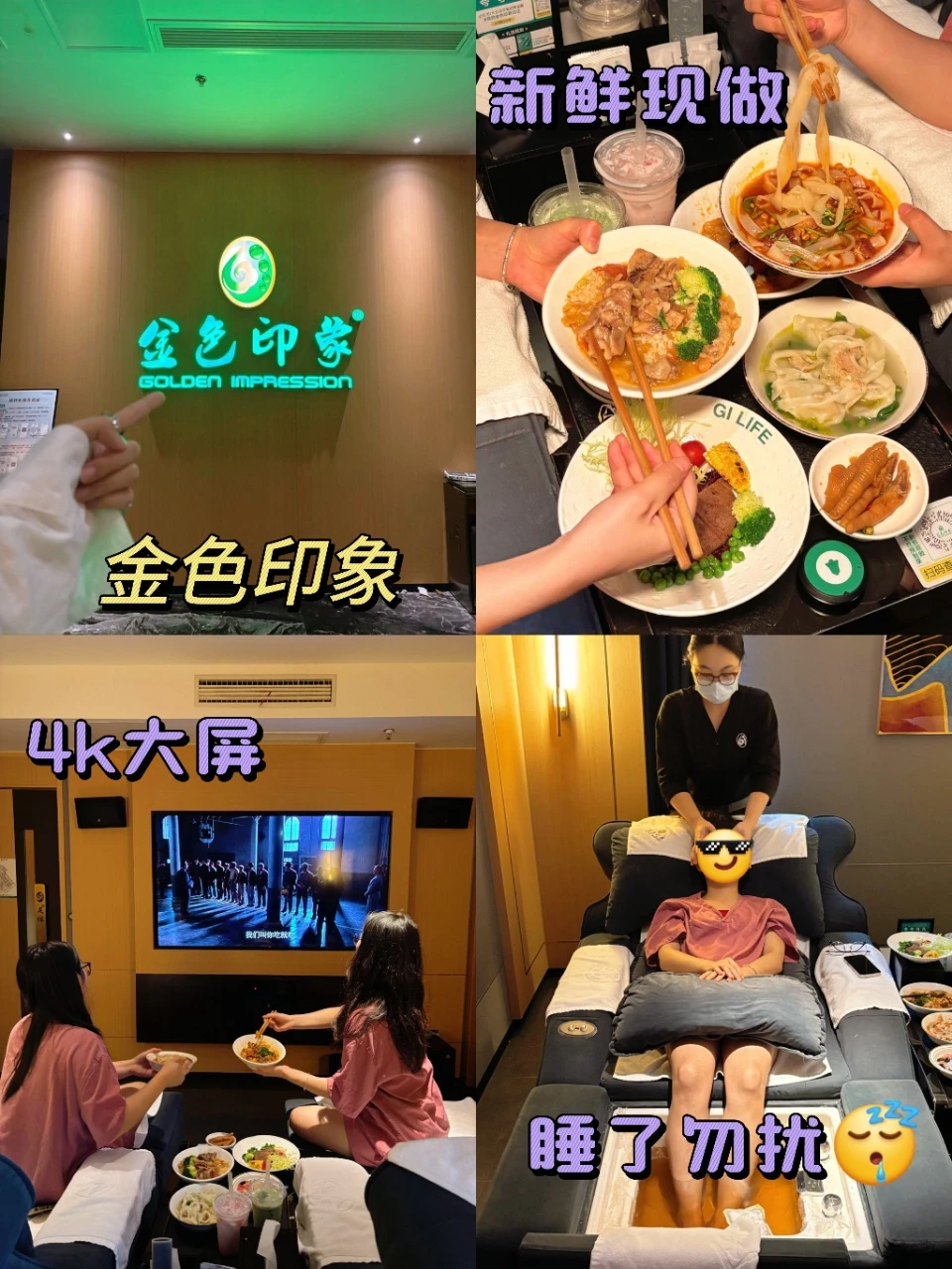 金色印象:堪称酒店平替的重庆足浴!不仅可以享受SPA、泡汤泉,还有许多新鲜现做的美食,困了累了还能留宿过夜,第二天还有免费的五星早餐可以享受~