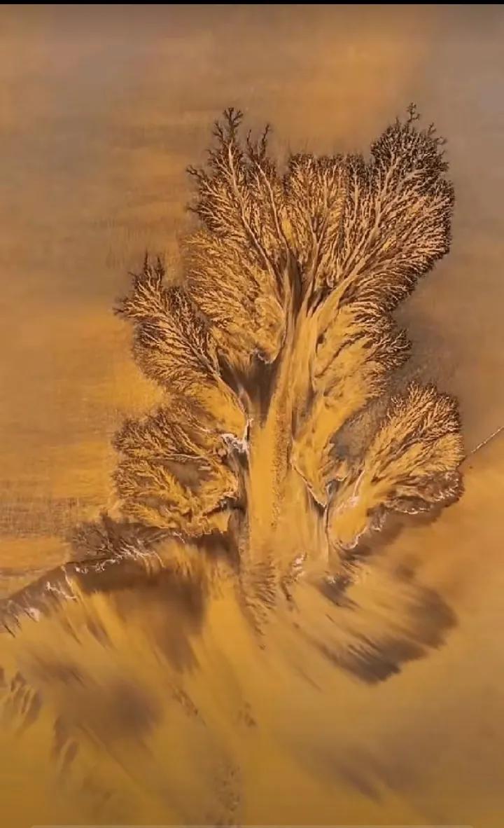 网友拍下的潮汐,像大树,像个白菜叶子,像水墨画,水流立体有质感。 是不是感觉很壮观呢?