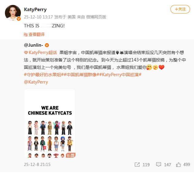 水果姐翻拍饭制巡演卡通形象水果姐KatyPerry真的把宠粉刻进DNA里了!粉丝精心创作的巡演卡通形象和经典表情包,居然被她翻牌了,还双向互动!不仅在演唱会上直接复刻饭制灵感造型,更是大方“认领”这些可爱创意,143个鲜活的凯蒂猫形象超惊喜,这份双向奔赴的爱简直就是太让人羡慕了,THIS IS AMAZING!!