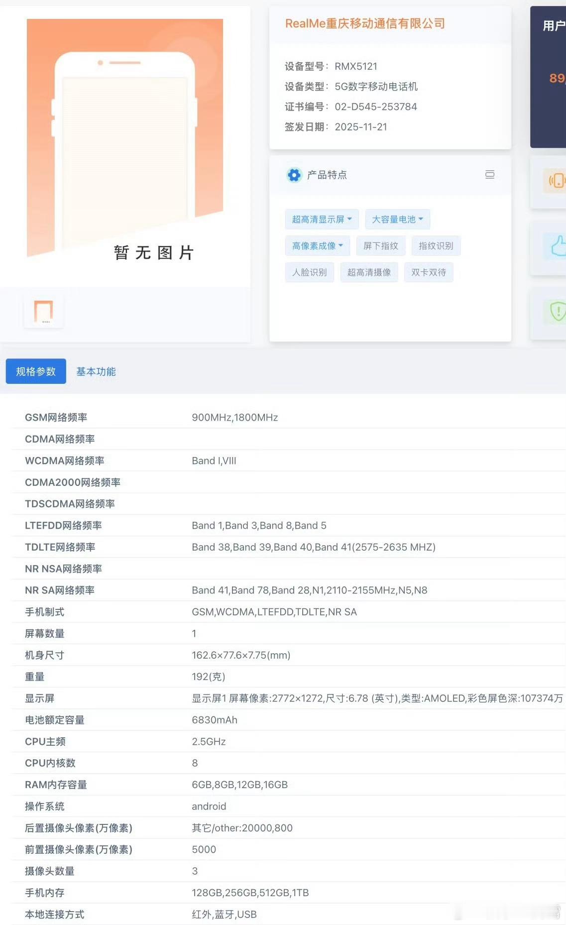 【真我16 Pro外观亮相工信部】正面采用6.78英寸直屏,背面似曾相识,矩阵镜组设计有点儿Find X9那意思,看起来像是素皮机身,内置6830mAh电池,机身厚7.75mm、重192g,后置2亿像素主摄 + 800万超广角双摄,最大16 + 1TB版本,距发布应该很快了,你们觉得好看吗?