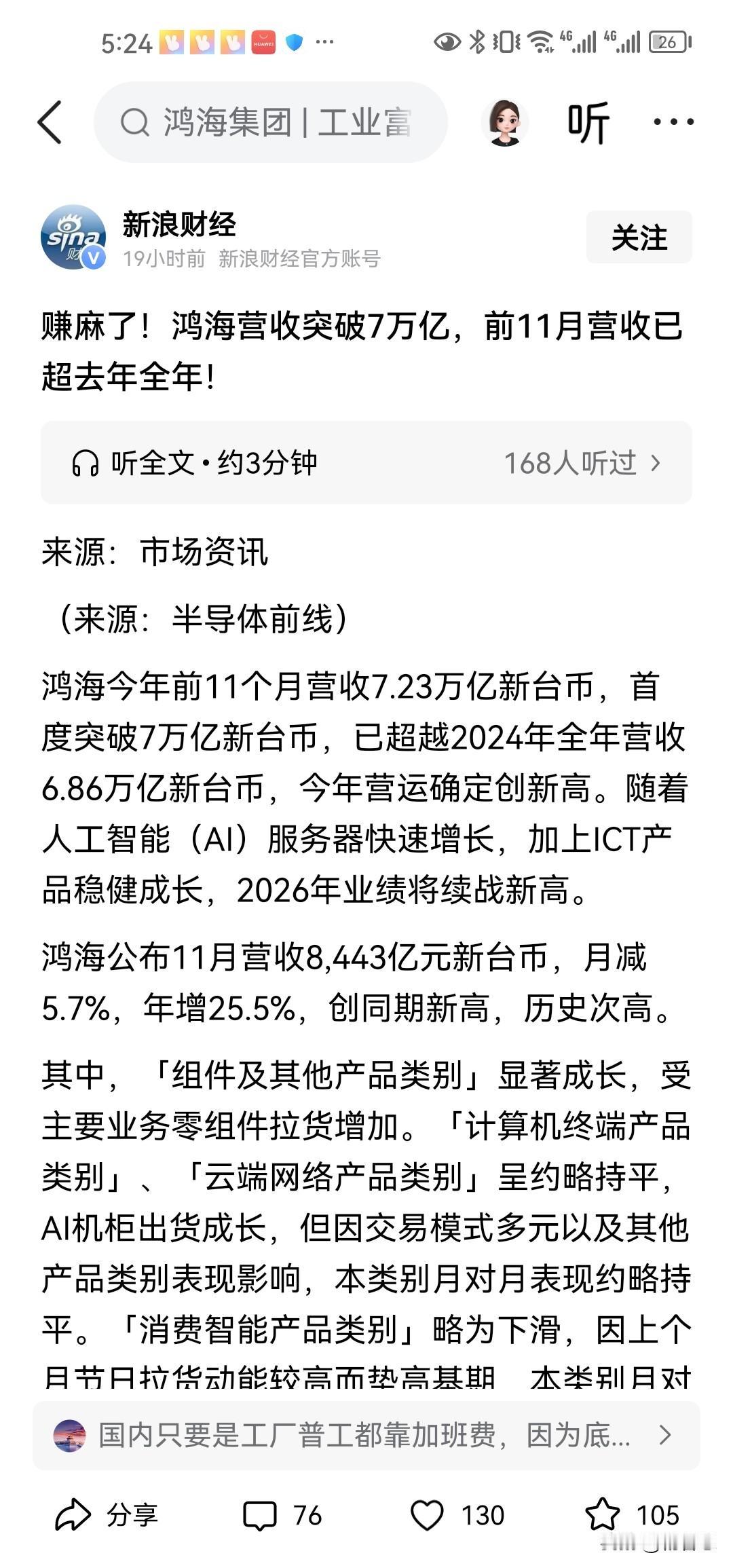 没想到吧,富士康它的营收创记录,70,000亿台币,超2,000亿美元。很多人说富士康是代工的,没有技术,富士康代工是没错,但他绝对有技术,没有技术,谁给你代工?台湾就两个大厂能打,一个就是鸿海,一个就是台积电,关键是这两个他们是互相合作,也是互相竞争的。如果台湾失去了这两个大厂,台湾的地位相当于亚非拉了。关键是这两个厂,中国大陆完全可以取代他的,为什么一直没有取代呢?难道有益养着吗?他们的钱也是不断给台独壮胆的。