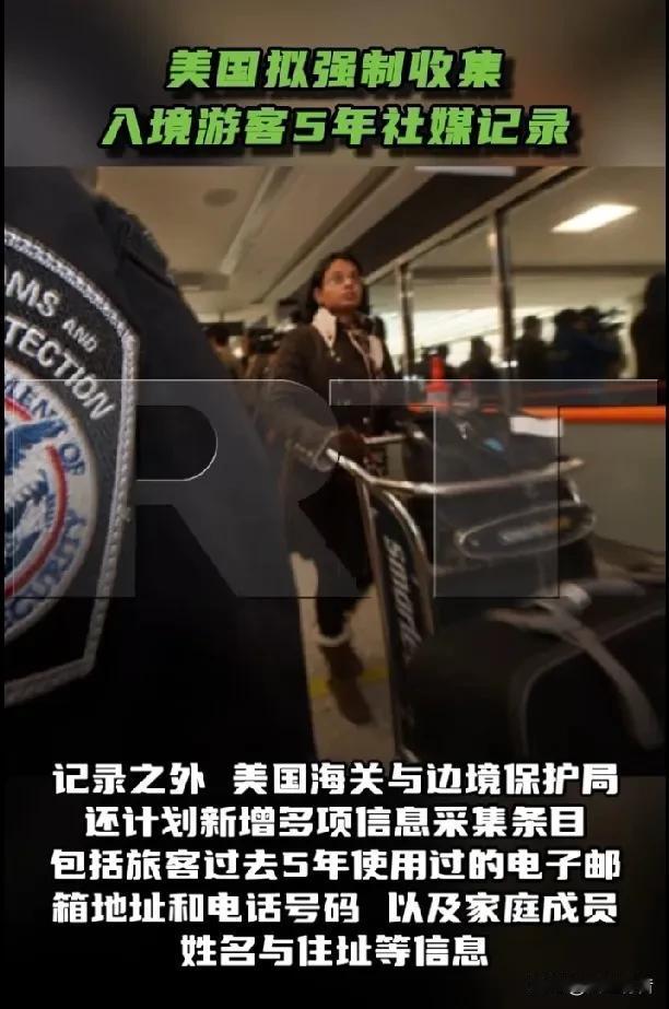 入境美国要检查过去5年的社交媒体记录! 据《今日俄罗斯》报道,12月10日,美国《联邦公报》发布通知称,特朗普政府计划要求所有外国游客在入境美国时提供过去5年的社交媒体记录。无论游客是否来自需办理签证的国家,此项信息均为“强制性”提交内容。 美国全国广播公司(NBC)报道称,英国、德国等国公民目前可通过旅行授权电子系统(ESTA)免签入境美国,但根据通知,此类免签国旅客今后可能要面对额外的入境门槛。 报道还指出,除了社交媒体记录之外,美国海关与边境保护局还计划新增多项信息采集条目,包括旅客过去5年使用过的电子邮箱地址和电话号码,以及家庭成员姓名与住址等信息。 此外,美国公民及移民服务局12月5日宣布新成立一个审查中心,以加强移民审查,保障国家安全。根据该局当天发布的公告,审查中心总部设在亚特兰大,“旨在使美国移民系统能更有效甄别恐怖分子、犯过罪的外国人以及其他可能对公共安全构成潜在威胁、犯有欺诈或其他罪行的外国公民”。 这应该是特朗普政府进一步收紧移民政策的又一举措。美国的态度很鲜明,说了美国坏话就别来美国。如果你在社交媒体上发表过涉美负面言论,今后可能很难入境美国了。
