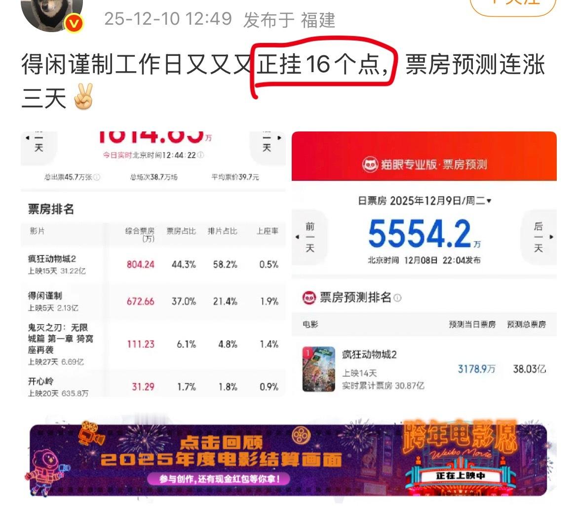 年度大黑马《得闲谨制》口碑非常好每天预测一涨再涨👏票房每天都超预期👍🏻今