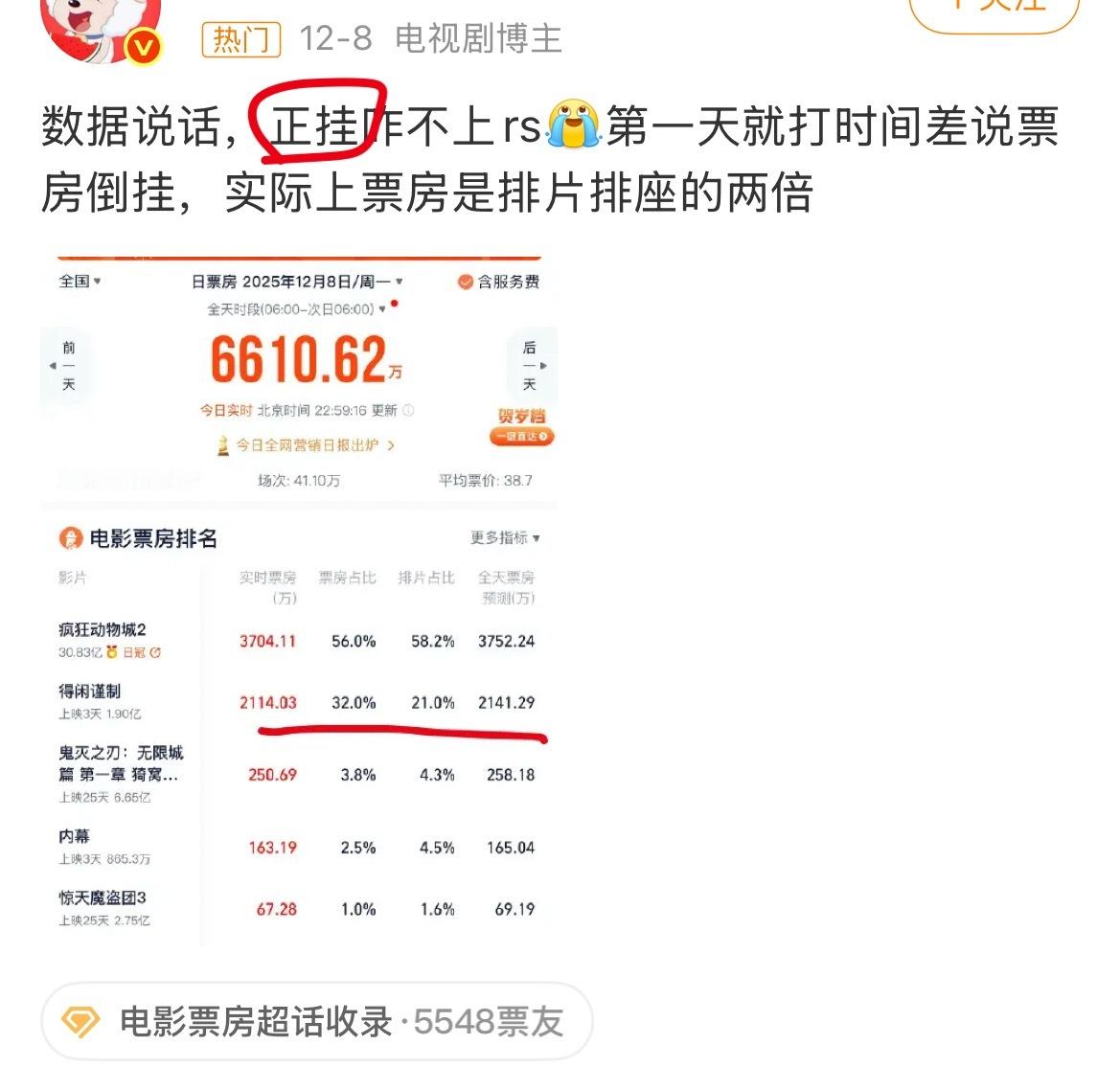 上映第三天,《得闲谨制》票房没有倒挂。前两天票房都倒挂了,第一天刚上映就被搞了黑