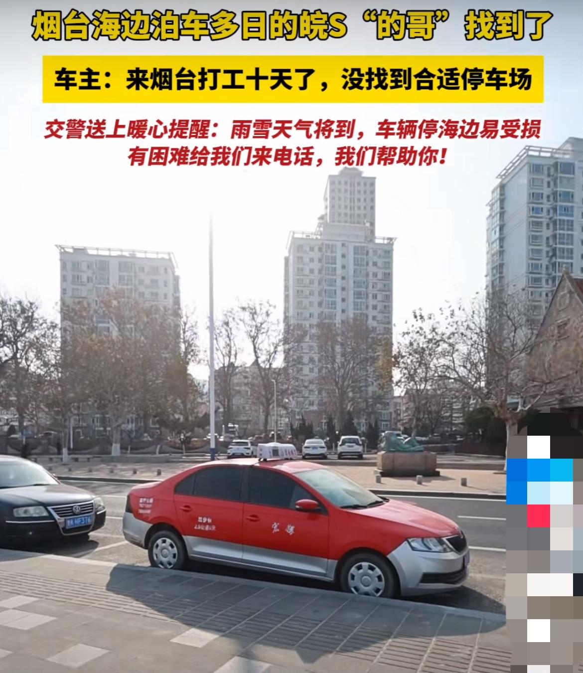 真的被烟台暖哭了!一辆安徽牌的出租车,在烟台芝罘区的海边停放数日,热心的烟台人关注到,非常担心车主的安全,后续的情节太感人! 近日,一位烟台市民每天晨练从滨海北路海边经过,发现有一辆红色出租车,挂着皖S牌,一连几天停放在路边,一直没挪窝儿,车上都落了一层灰。 一辆外地车,长时间停在烟台海边,这让热心的烟台市民开始担心起来,车主在哪里?是不是遇到什么困难了? 这位烟台市民就向媒体进行了反映,一时间,这个来自异乡的陌生人,引起烟台人的集体关注。 在媒体的帮助下,今天终于联系上了这辆出租车的车主。他姓单,是来烟台做生意的。之所以把车停在海边,是因为这里离他工作地点近,还免费。 烟台的交管部门也联系到单先生,温馨提示他,近日有大风雨雪,车停在海边,万一被海水淹了,可不是闹着玩儿的。 我见识过烟台海边的大浪,那气势可不比钱塘江大潮逊色,海水冲上岸,也是常有的事,因此,人家交管的提醒、也是很有必要的。 听单先生说自己找不到免费的停车场,交管工作人员还热心地表示,要给单先生提供帮助,把单先生感动的,一个劲儿地说谢谢! 一辆外地车,一个外乡人,见证了烟台这座城市的温暖,有人说,这个时代,人与人之间越来越冷漠,但是,烟台又一次用事实告诉大家,烟台人有爱心、有温度。 2025年的烟台格外有故事,年初,一场5万元寻找伯恩山犬,带来爱的双向奔赴;年末,一场寻找出租车车主,又感动了多少漂泊在外的打工人。 我们为烟台点赞,希望这座城市的温暖,可以让异乡的你,把这里当成自己的家,也希望外出打拼的烟台人,都能被温柔以待。