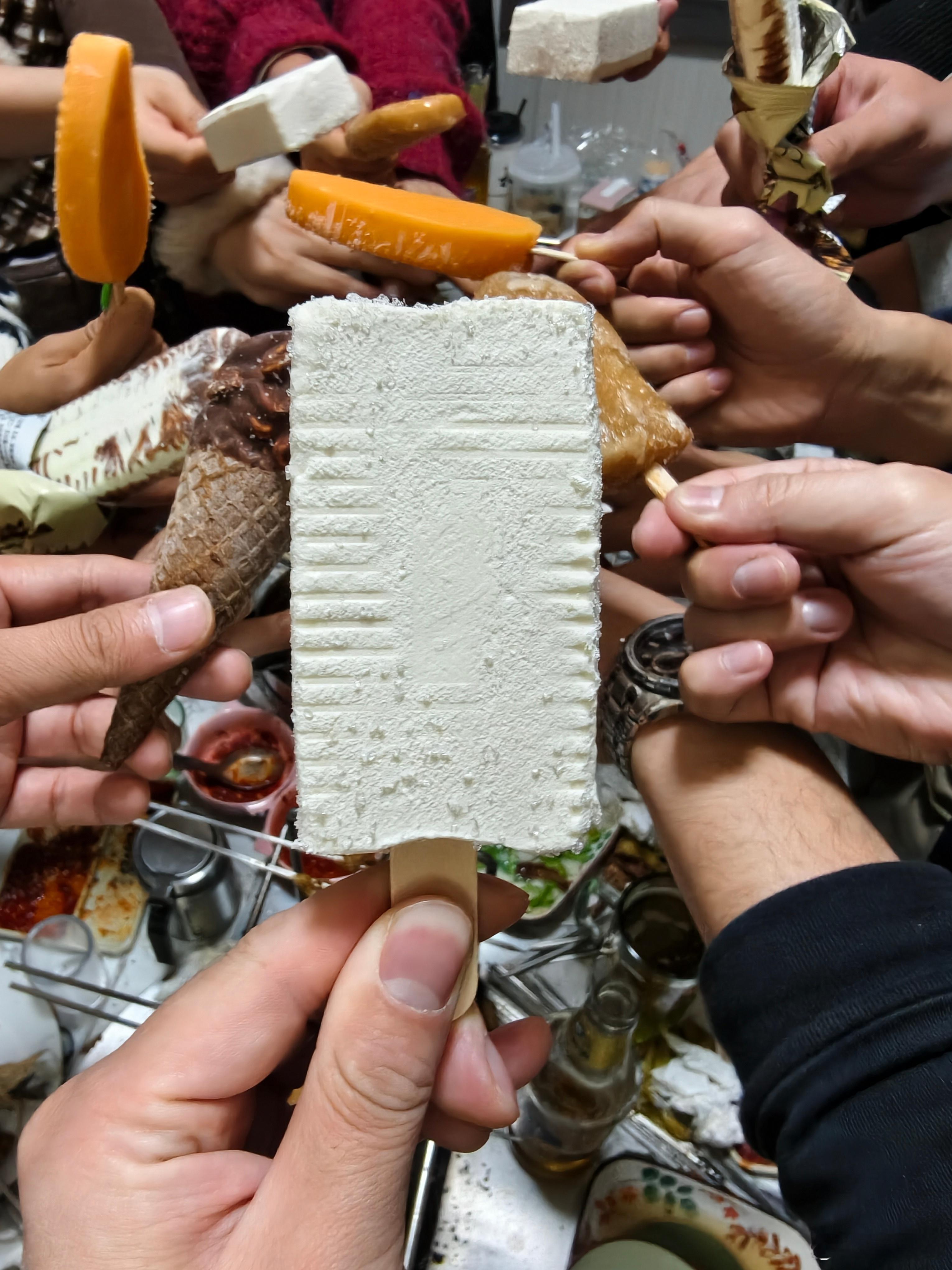 讲真的,东北的烧烤真的无敌好吃。 还有不管零下多少度你都得买根雪糕尝尝,带劲! 延边