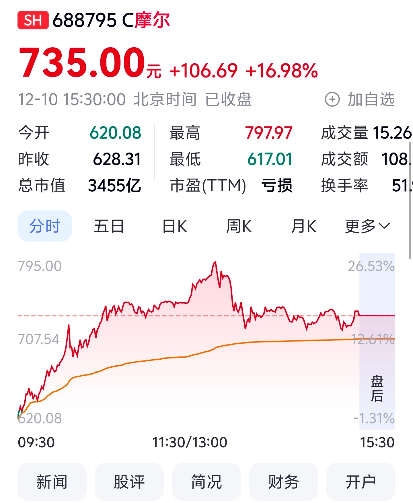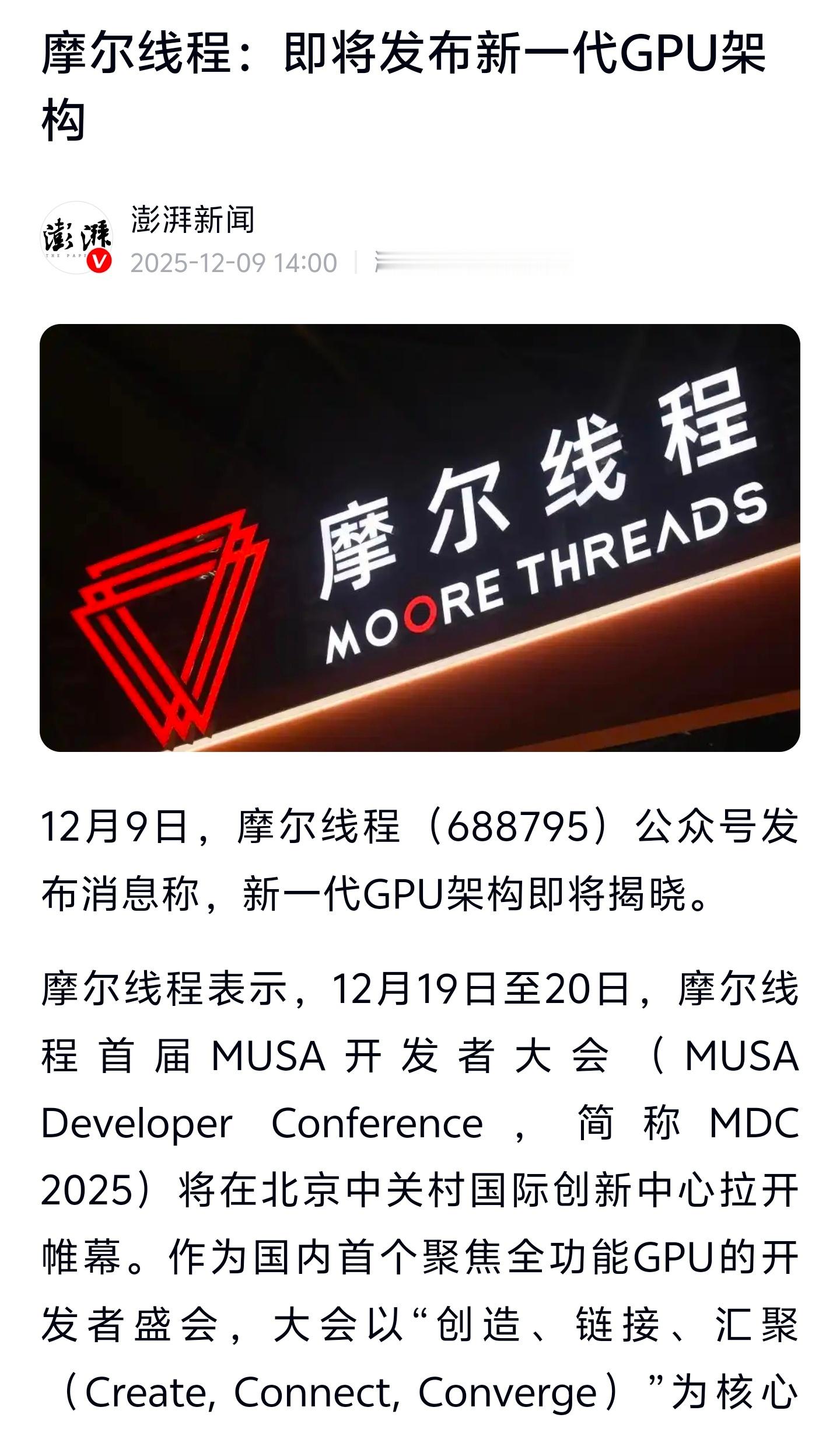 摩尔线程股价创新高 总市值超3500亿因为昨天摩尔线程说要发布新一代的GPU架构。原来的那套就是自研的了,现在上市了大家肯定都盯着😏