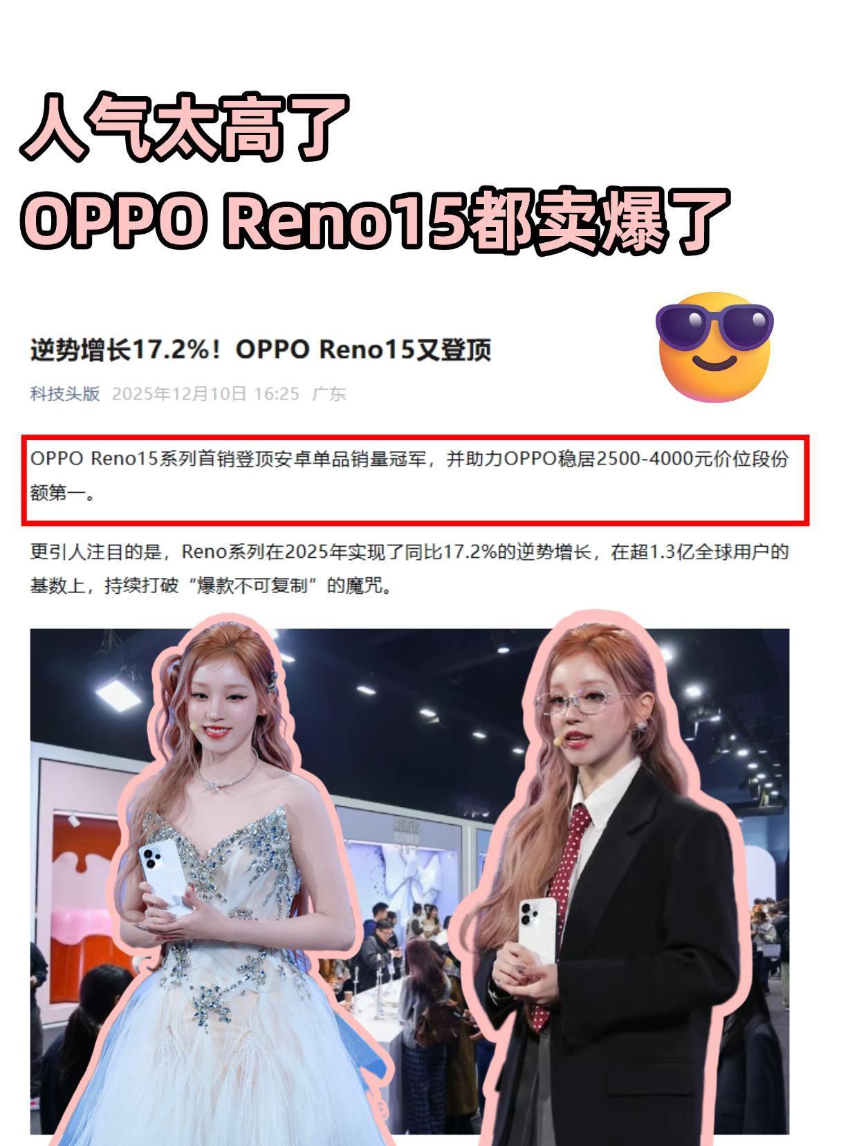 在用oppo手机的,下一款你还会选oppo吗 看最近这个“Z世代最喜爱的中国全球化品牌”榜单,OPPO排名13, 不过我对这个不感兴趣,我比较惊讶的是2025开度的调研里提到,OPPO有近50%的同品牌换机率, 也就是说每两个OPPO用户,就有一个会再次选择OPPO,在用OPPO的来说说看是不是? 好像也是,绿厂最近的新品感觉都挺不错的, 像刚发布的OPPO Reno15不就是吗,宋雨琦代言,蝴蝶结设计亮眼, 这📱主打拍照还做了出圈实况拼图、前后同拍等等玩法, 感觉live图这块都比🍎强了,依靠产品实力妥妥卖爆! 它都登顶安卓单品销量🏆,还帮OPPO稳住了2500-4000价位份额第一, 而且25年Reno系列同比增长17.2%,属于是逆袭成功了? 话说现在在用OPPO的下一款手机还会选它吗??