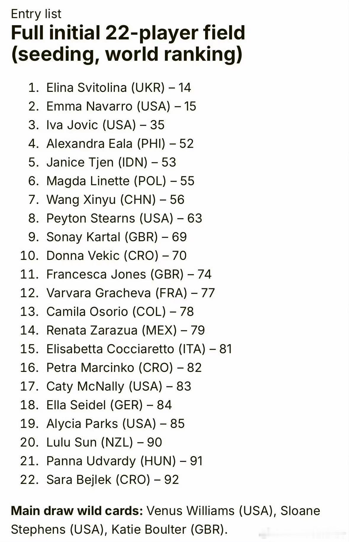 🔵WTA250奥克兰女单参赛名单✅🇨🇳王欣瑜入围🇺🇸大威、🇺🇸斯蒂芬斯、🇬🇧博尔特收获外卡网球talking大会 丨中国网球