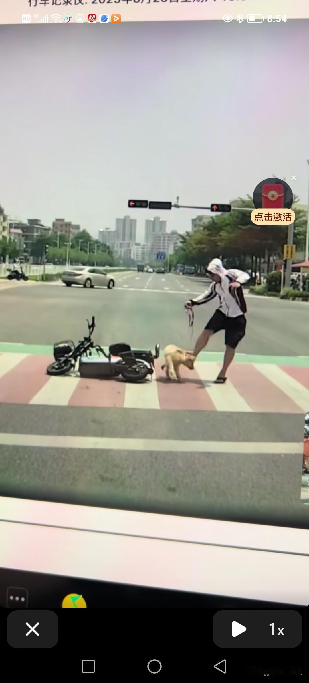 遛狗时没拉住狗绳,狗狗跟路过的阿姨嬉闹,主人赶忙拉住狗绳,结果狗狗踢了阿姨两脚。回家后,狗狗还挨了打。养狗必牵绳 不牵绳狗主人