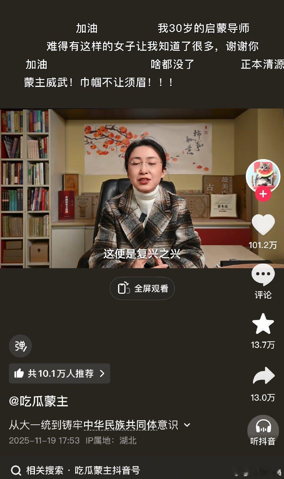 吃瓜蒙主抖音粉丝短短几天已经突破了500万。现在抖音上全是她讲红楼梦的切片。