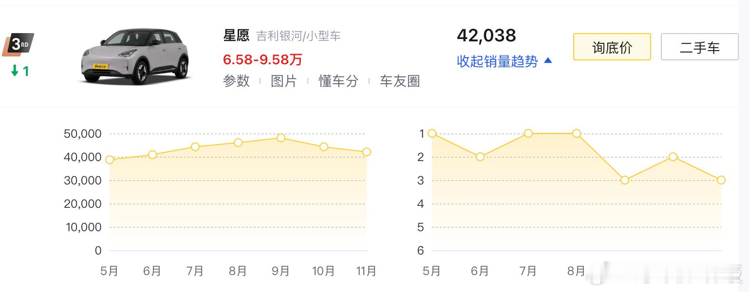 之前好些月份,比亚迪海鸥是全部车型销量的冠军,但近期开始跑不过吉利星愿。同样价格下,更大更精致,还是太卷了,6万元已经给你弄出自行车……