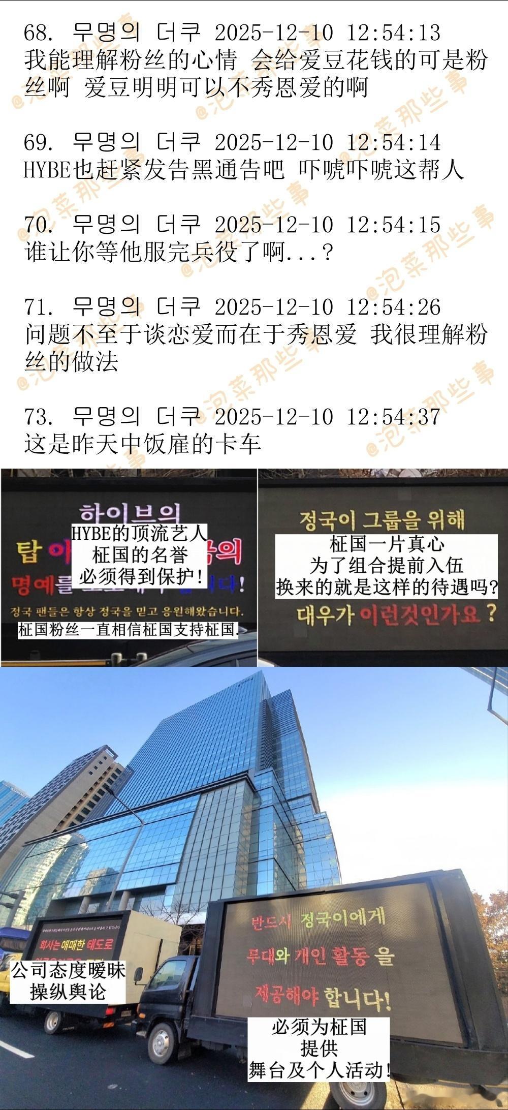 🔥🔥韩网600楼热帖评论翻译🔥🔥HYBE大楼前针对BTS田柾国的卡车示威cr.theqoo