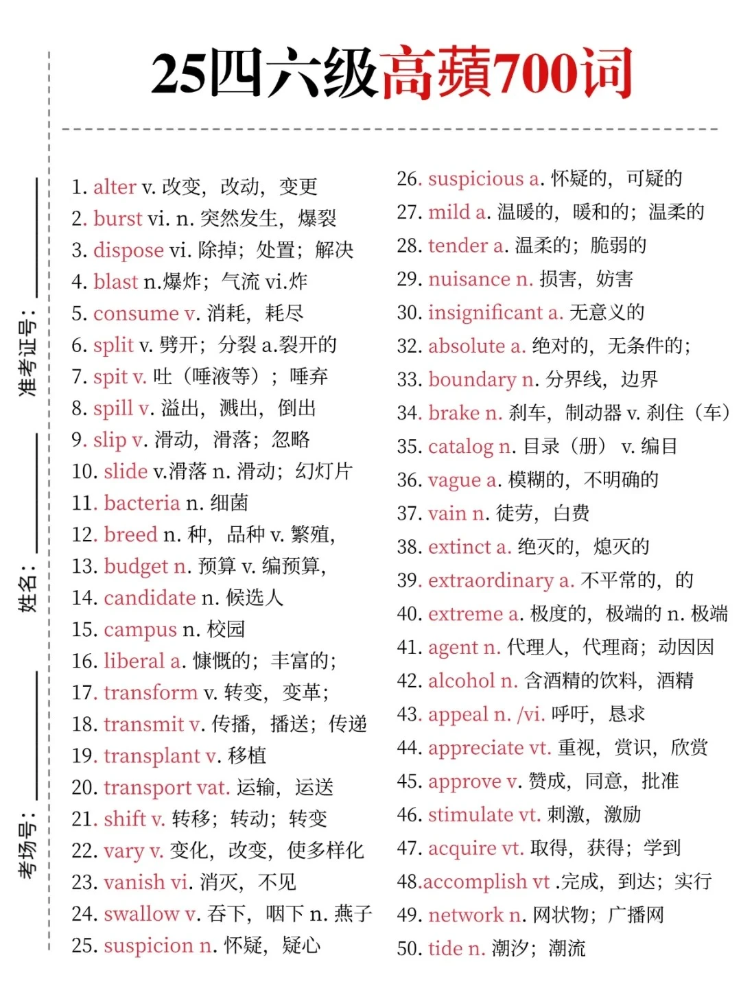 ✅《25 四六级高蘋 700 词》:考前急救必备,背完考场眼熟一大半!